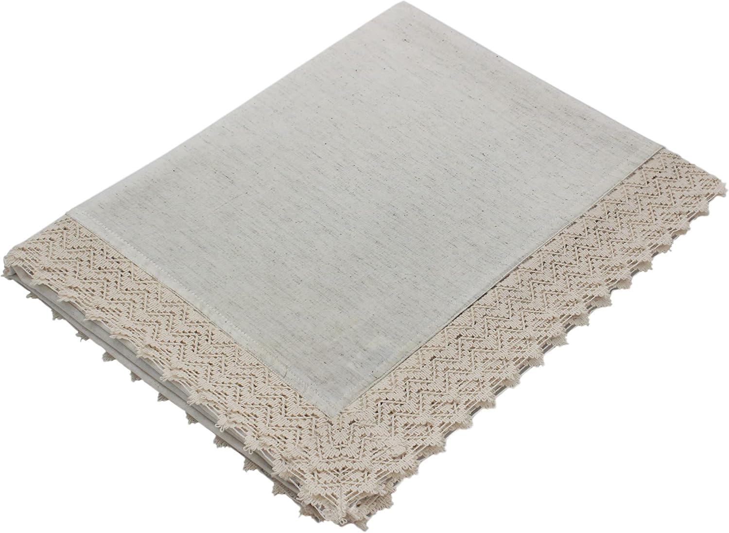 INCLUDES: One (1) Cotton Flax Linen Table Cloth framed with elegant lace, measuring an extra large 60 inches x 120 inches in Natural color.