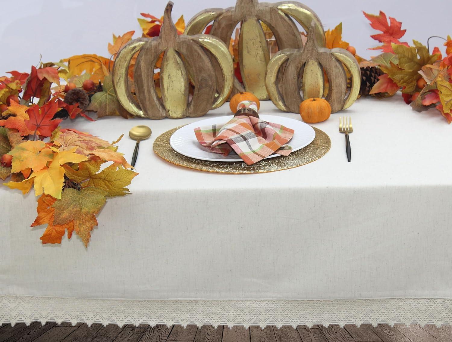 COTTON CRAFT Flax Linen Tablecloth with Lace – 60×120 inch XL Rectangle Table Cloth – Harvest Thanksgiving Holiday Party Kitchen Dining Table Cover – Washable Reusable 10 Foot Tabletop Cover – Natural