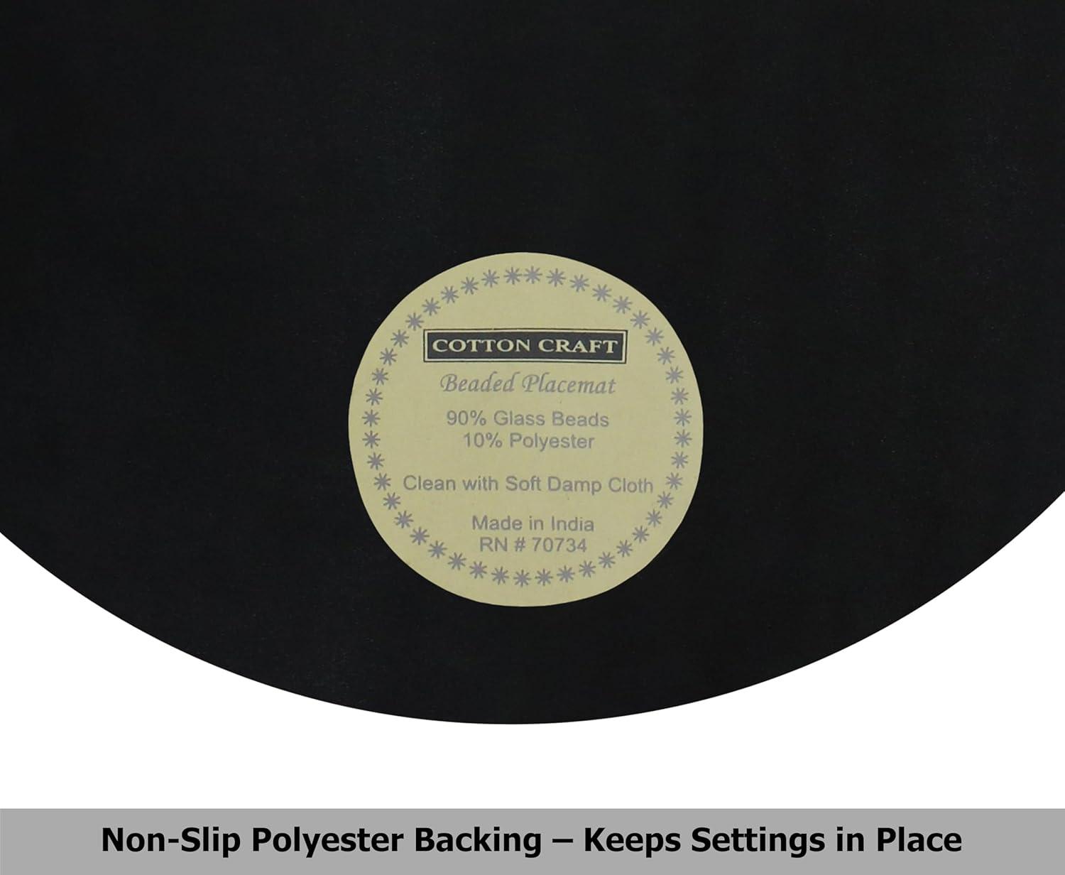 SET CONTENTS: Set includes four (4) COTTON CRAFT Round Beaded Charger Placemats in Red, each measuring 13.5 inches round
