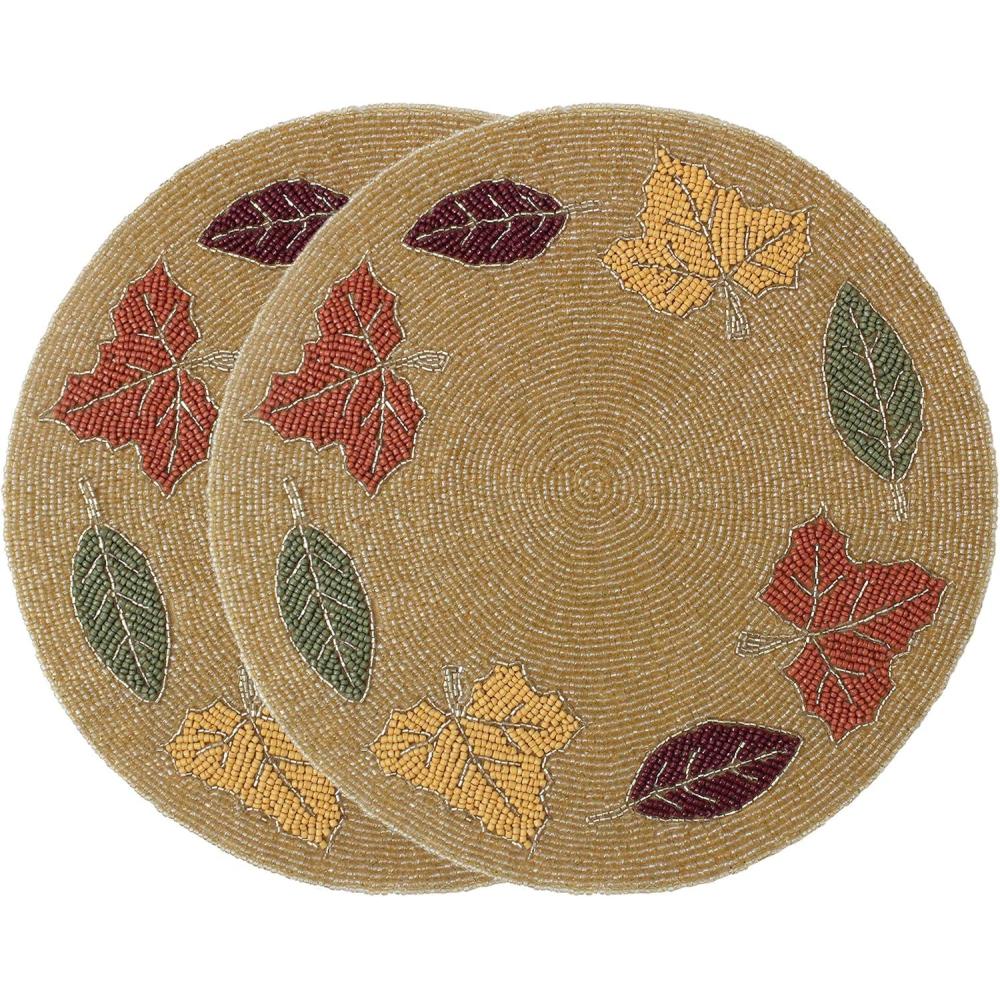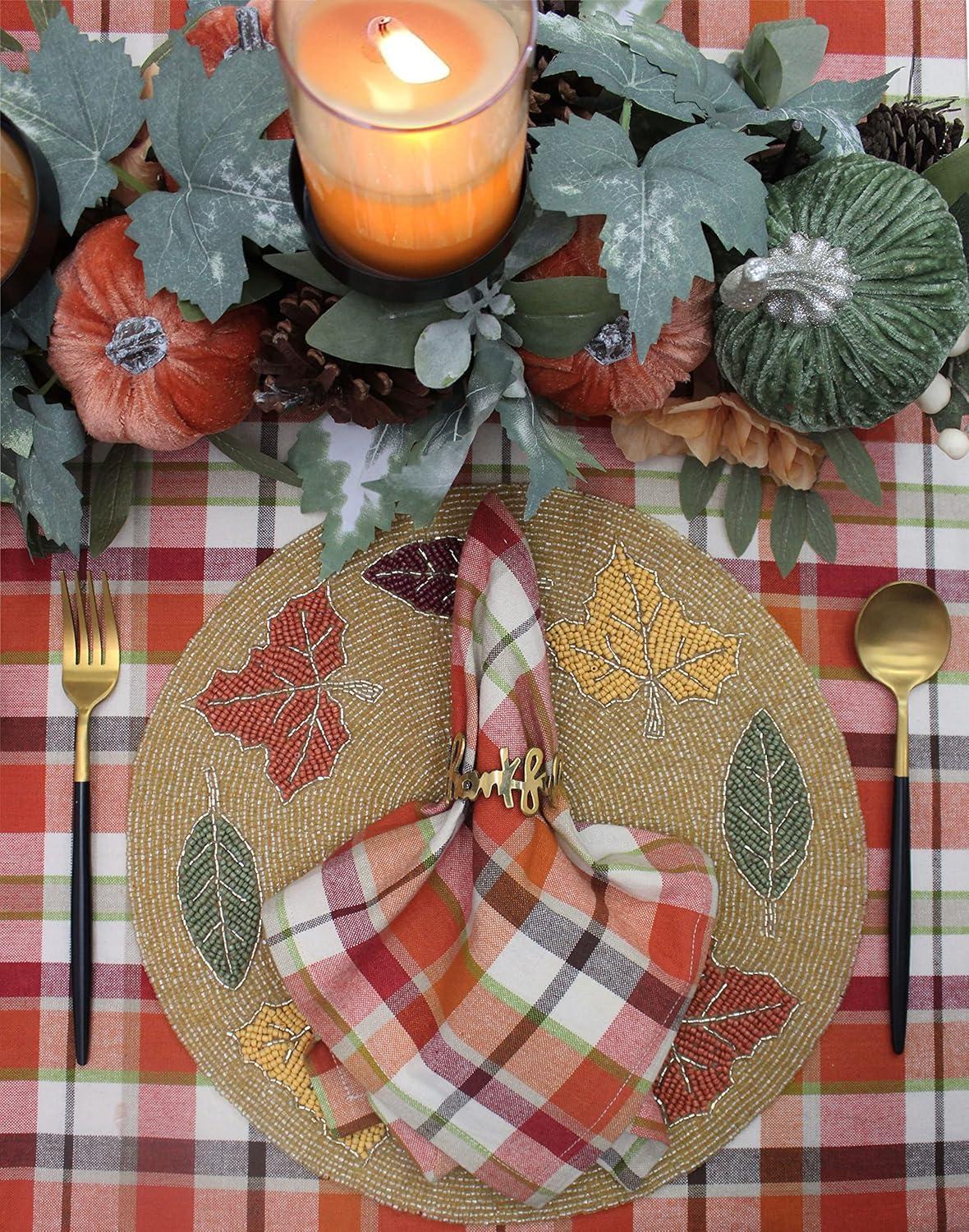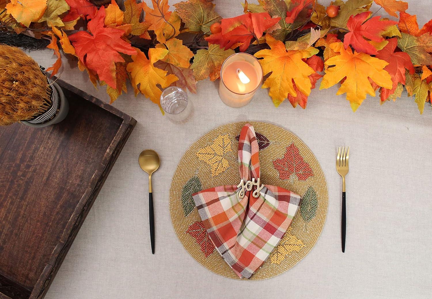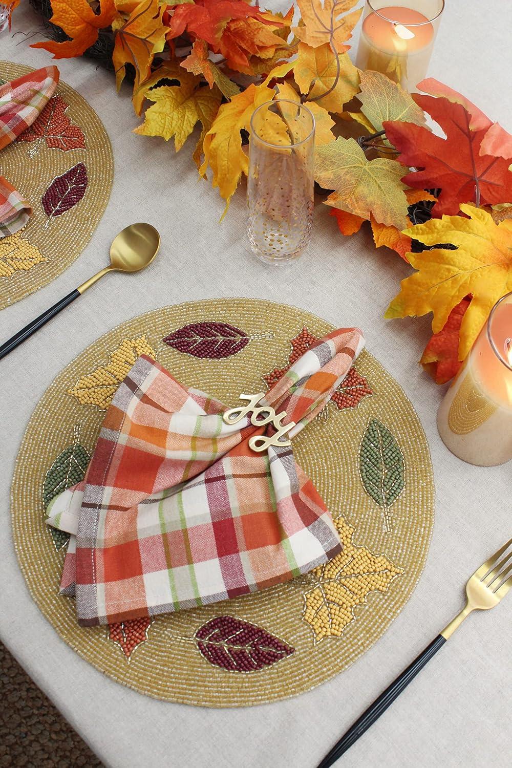 COTTON CRAFT Glitz Handmade Beaded Charger Placemats – Set of 4 – Halloween Harvest Autumn Fall Holiday Christmas Xmas Dining Celebration Festive Party Table Décor – 13.5 inch Round – Red(Gold Rust Green)