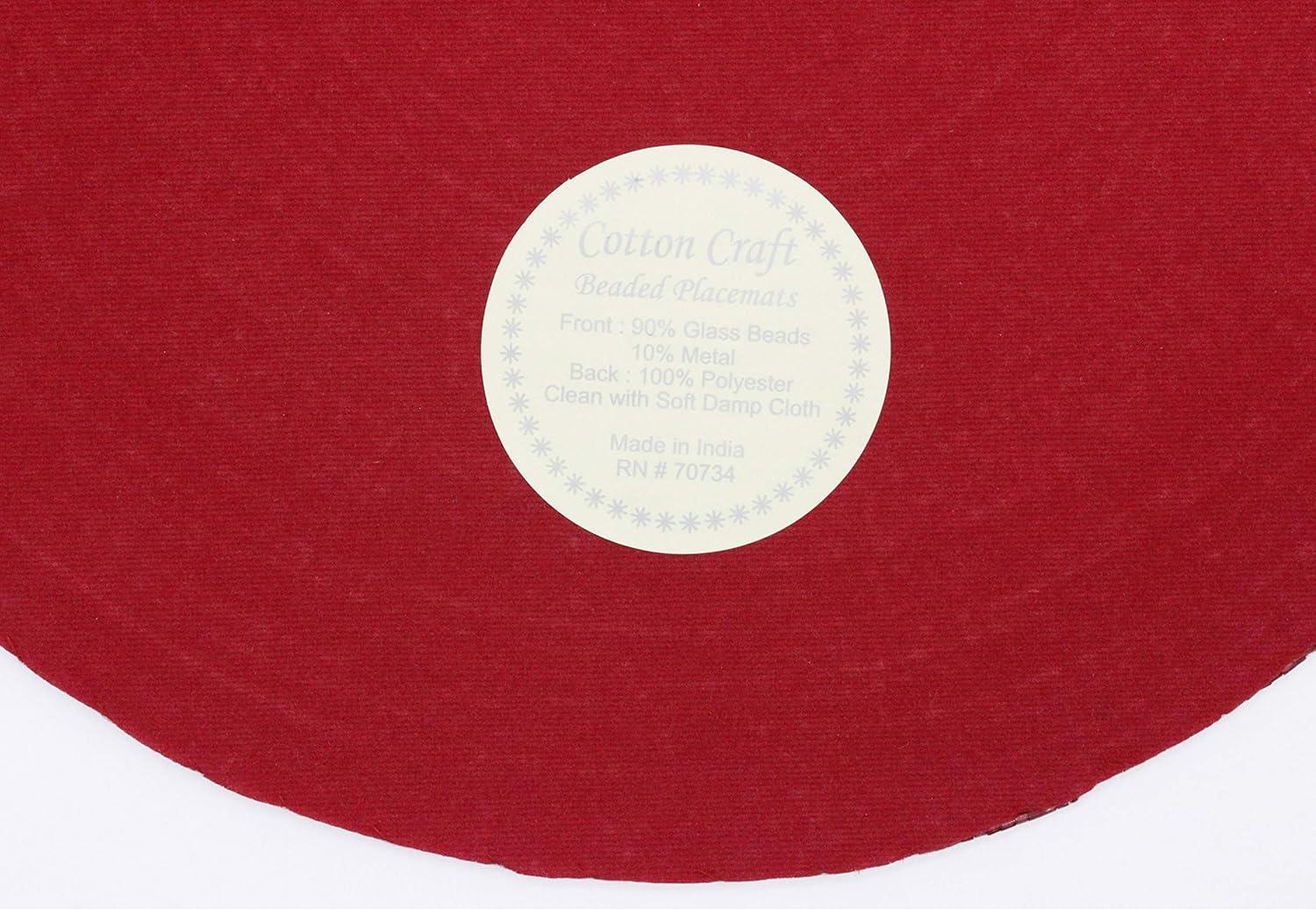 SET CONTENTS: Set includes four (4) COTTON CRAFT Round Beaded Charger Placemats in Red, each measuring 13.5 inches round