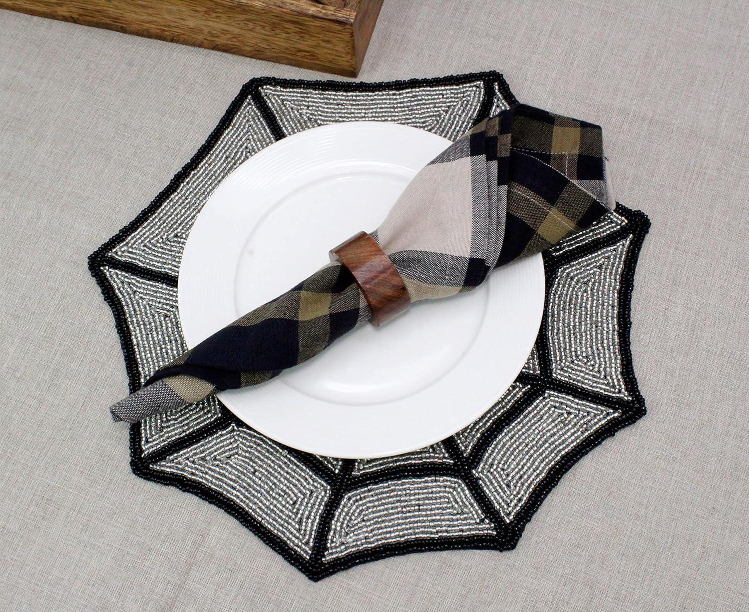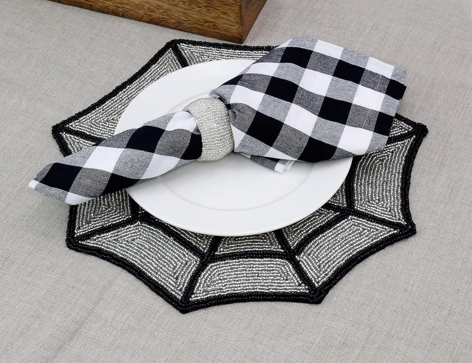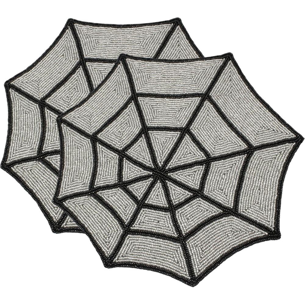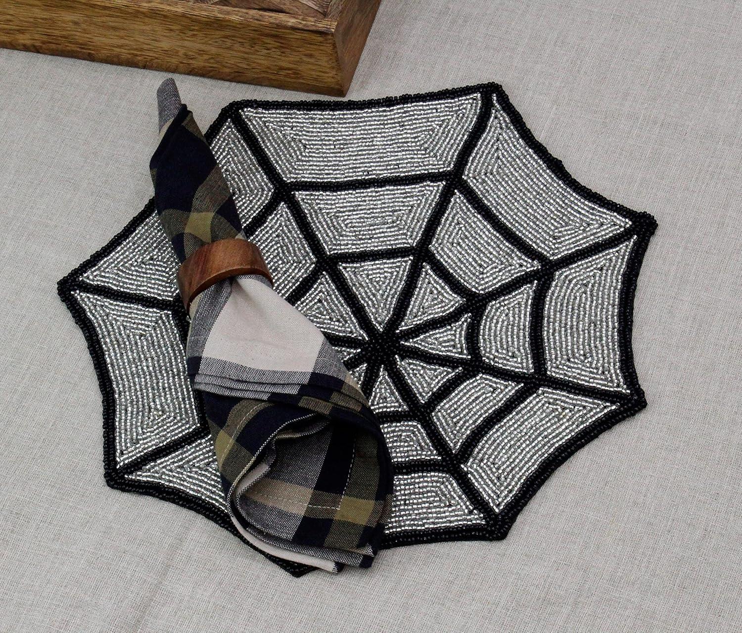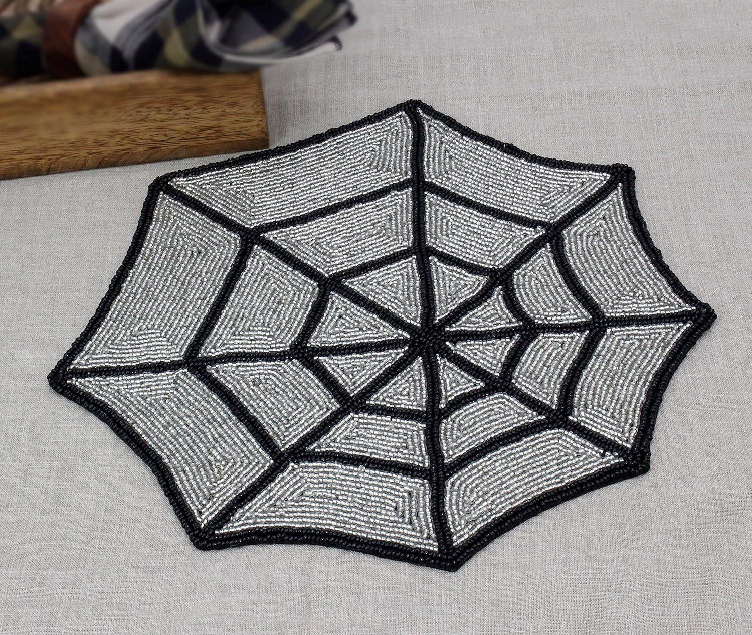 COTTON CRAFT Glitz Handmade Beaded Charger Placemats – Set of 4 – Halloween Harvest Autumn Fall Holiday Christmas Xmas Dining Celebration Festive Party Table Décor – 13.5 inch Round – Red(Silver Black – Spider Web)