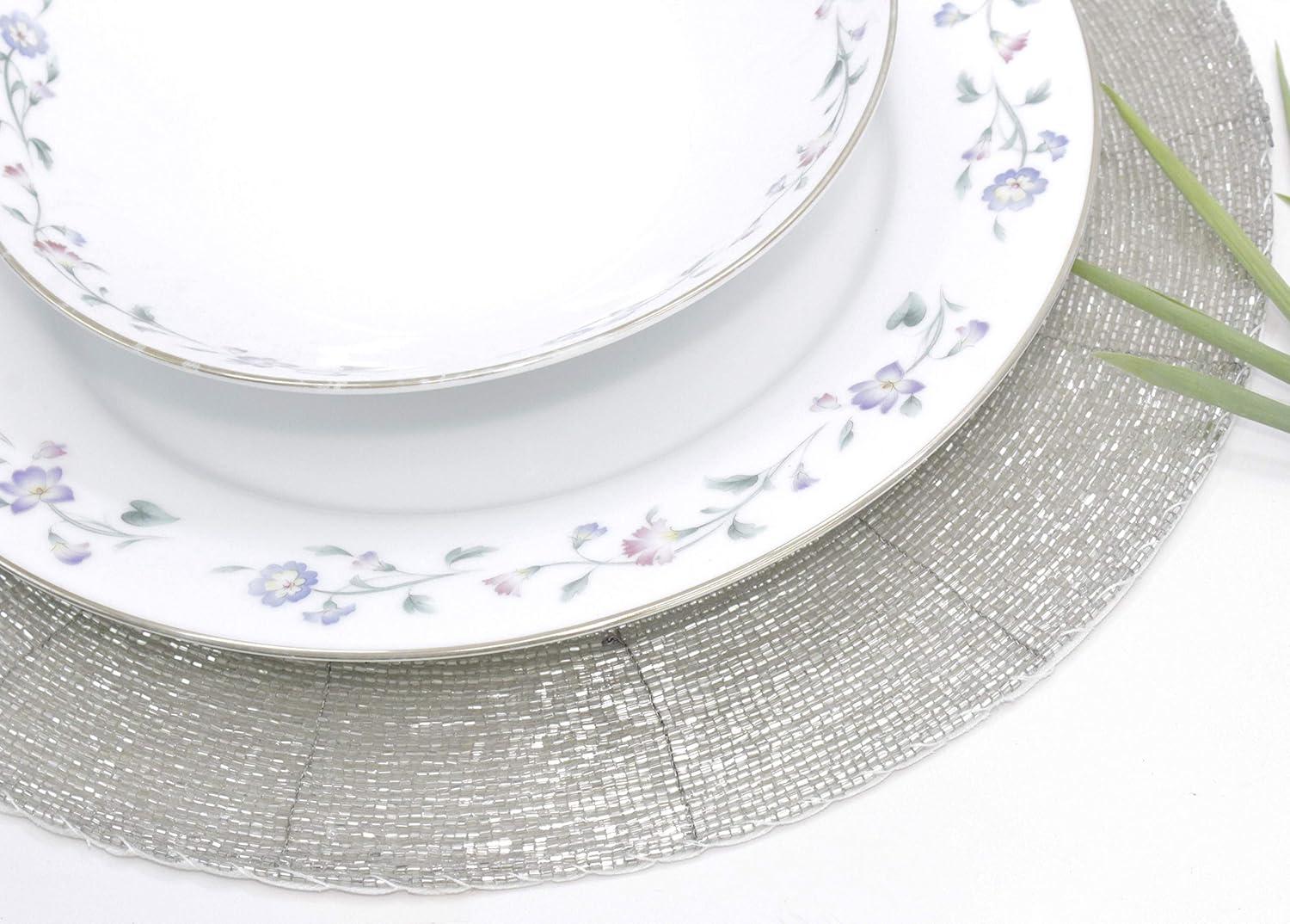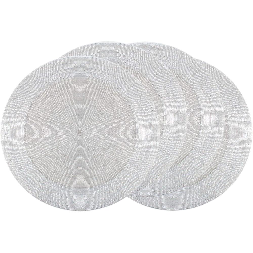 COTTON CRAFT Glitz Handmade Beaded Charger Placemats – Set of 4 – Halloween Harvest Autumn Fall Holiday Christmas Xmas Dining Celebration Festive Party Table Décor – 13.5 inch Round – Red(Silver)
