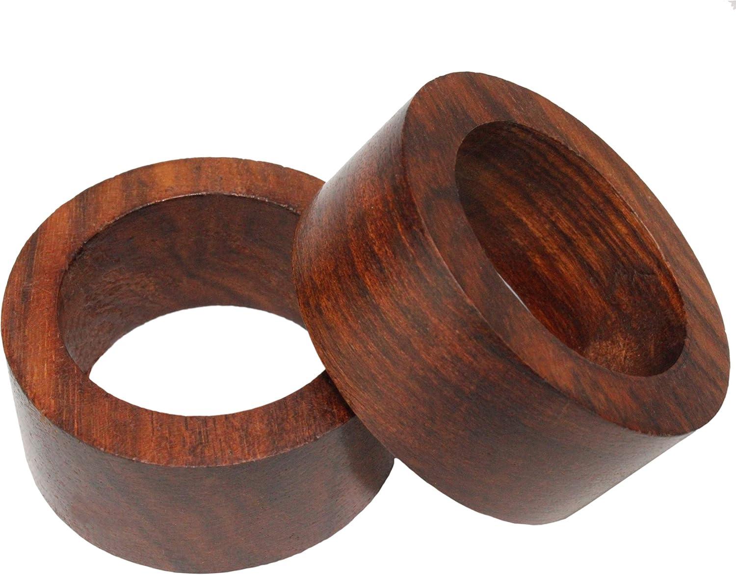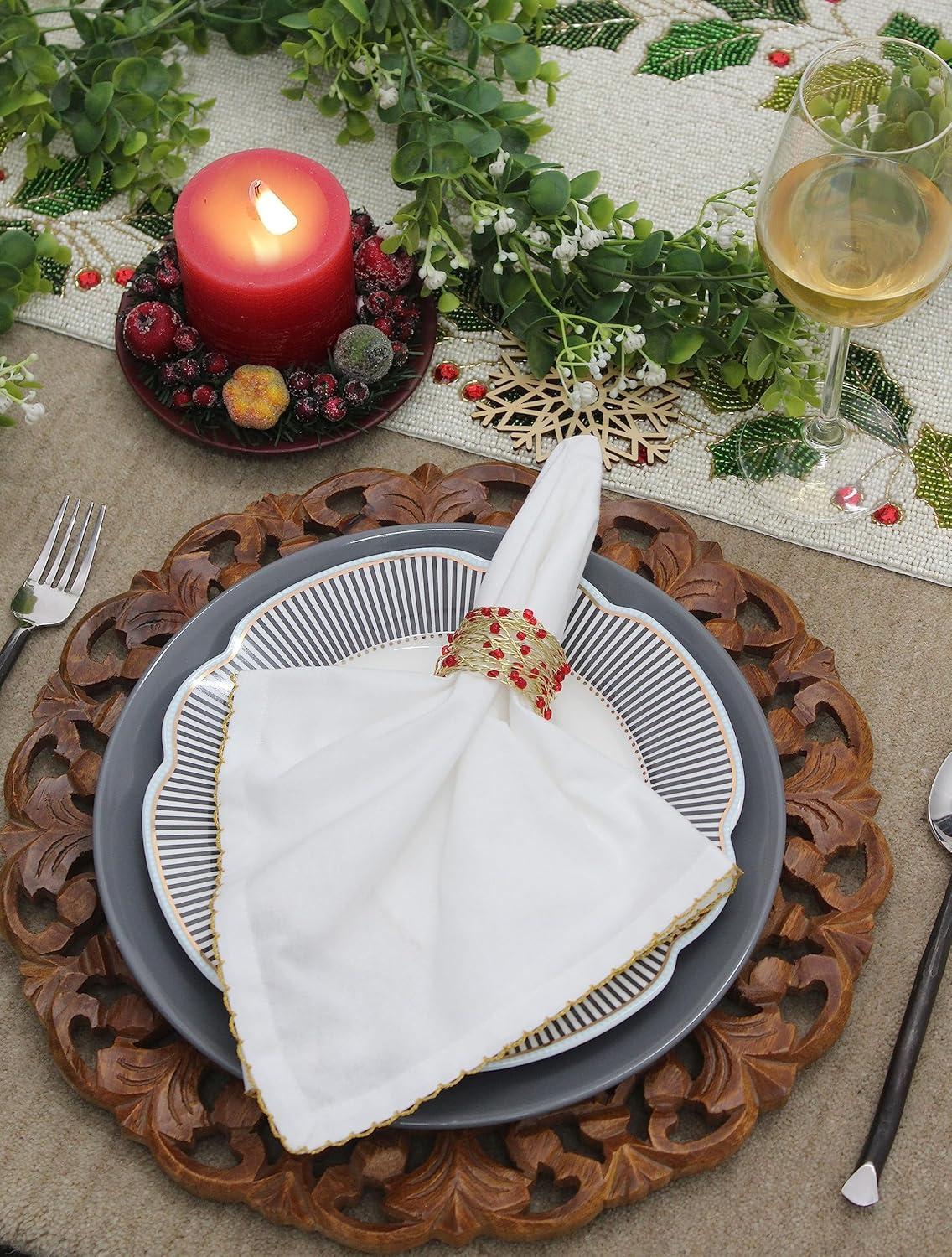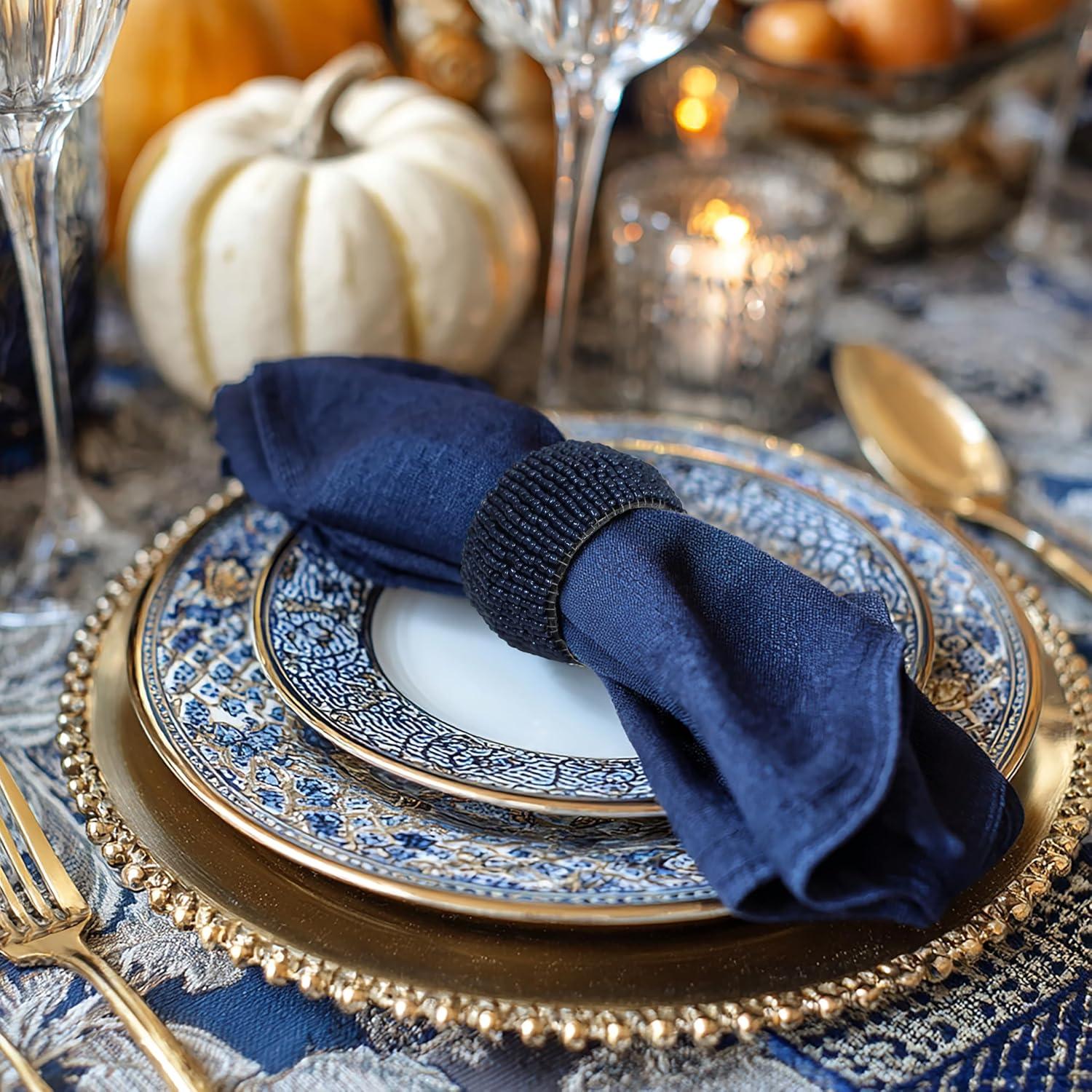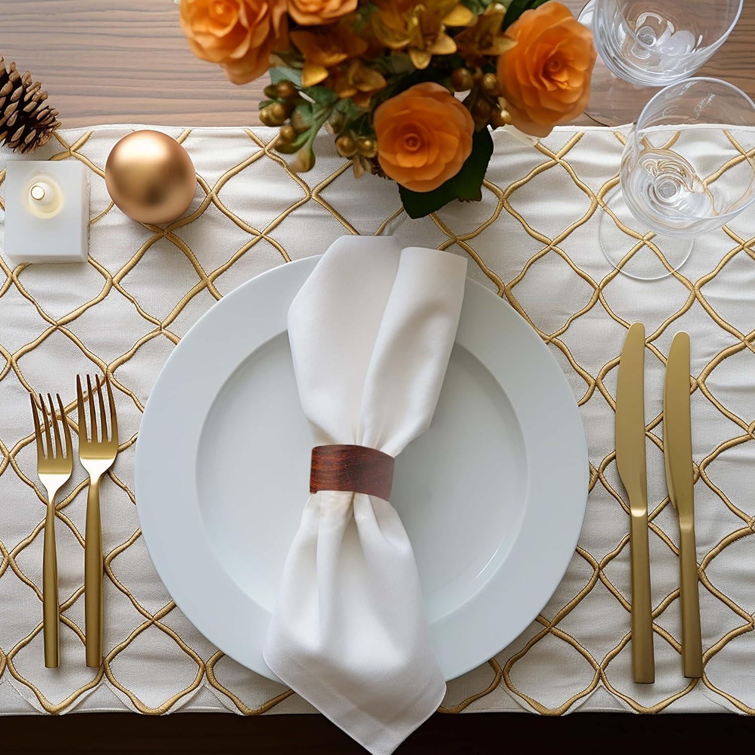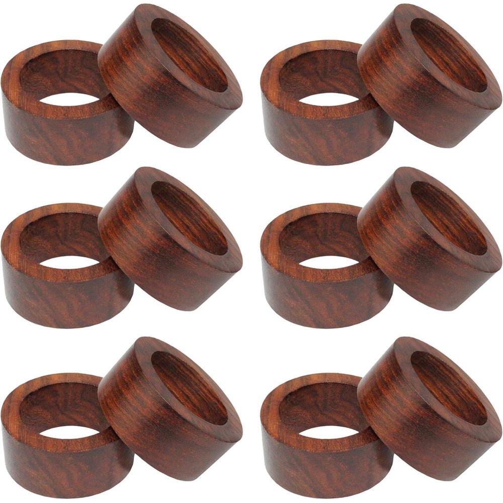 COTTON CRAFT Glitz Handmade Beaded Dining Table Napkin Rings – Set of 12 – Halloween Harvest Autumn Fall Thanksgiving Holiday Christmas Xmas Celebration Festive Party Gift Décor – Gold(Classic Wood – Dark Natural)