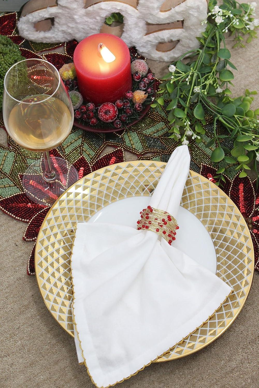 INCLUDES: Twelve (12) COTTON CRAFT Glitz Beaded Napkin Rings in Gold. Each napkin ring measures 2 inches round