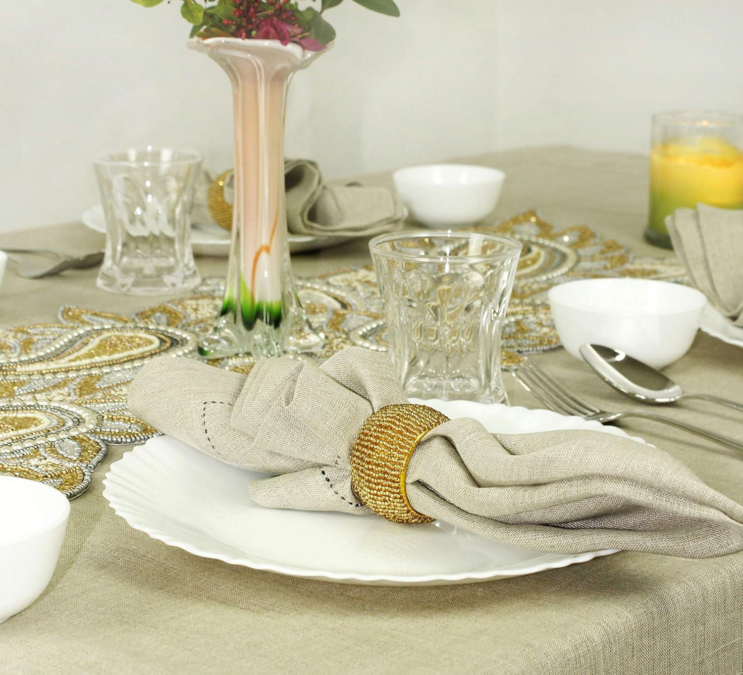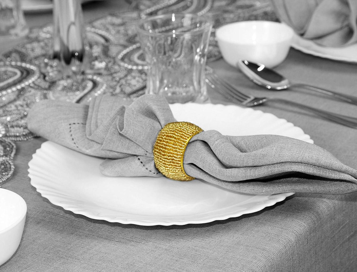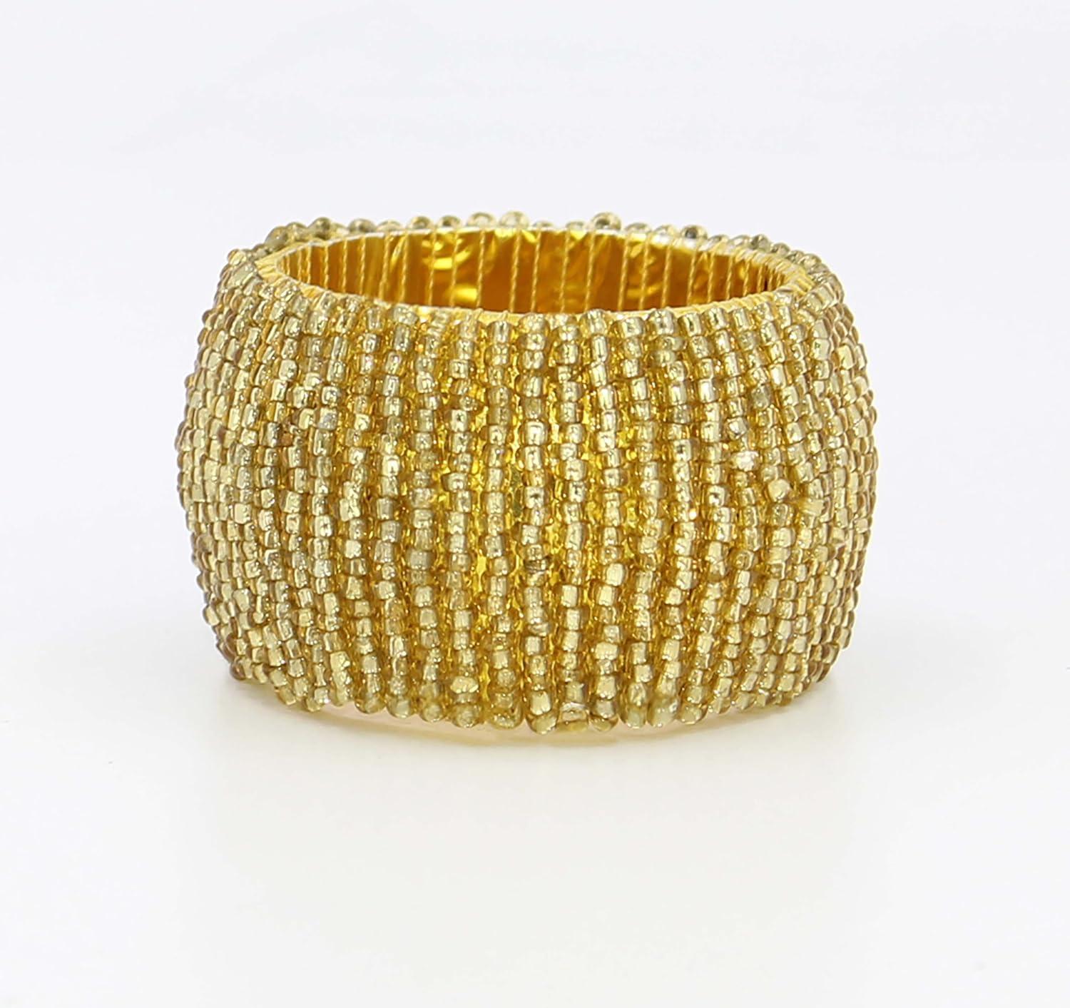 COTTON CRAFT Glitz Handmade Beaded Dining Table Napkin Rings – Set of 12 – Halloween Harvest Autumn Fall Thanksgiving Holiday Christmas Xmas Celebration Festive Party Gift Décor – Gold(Gold – Beaded)