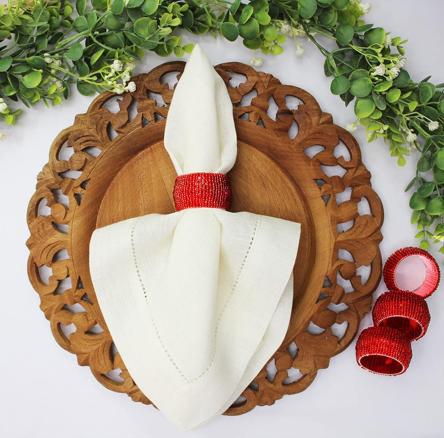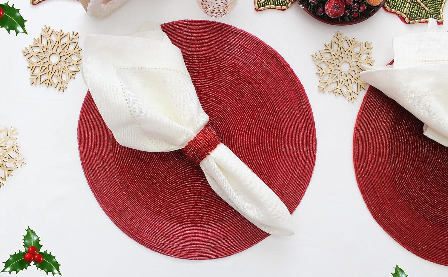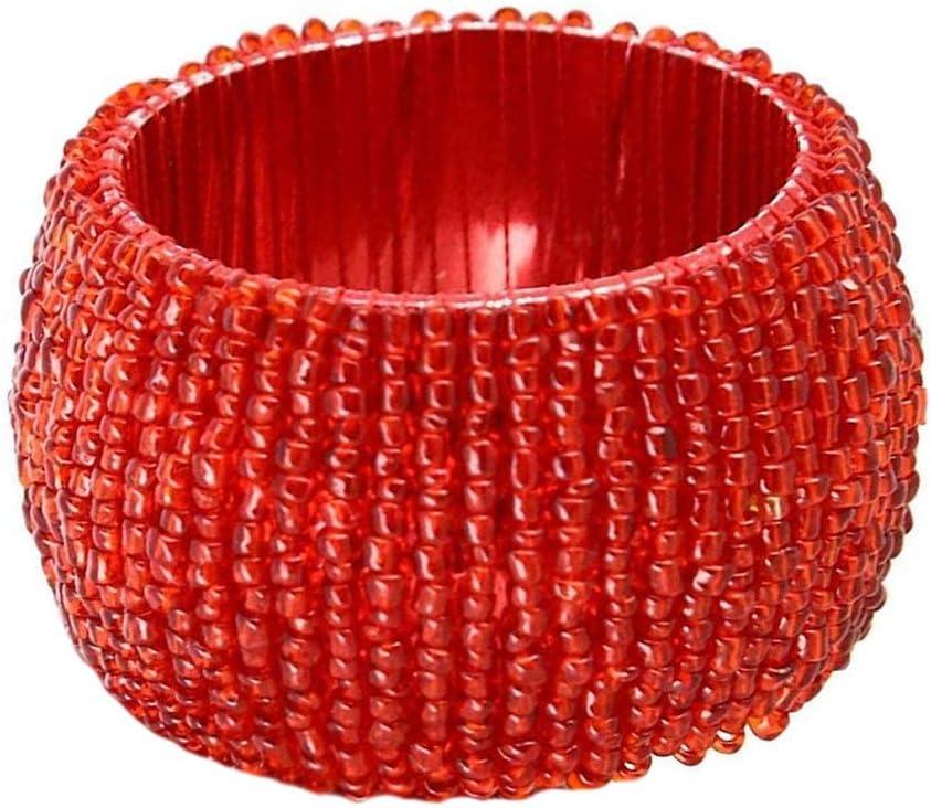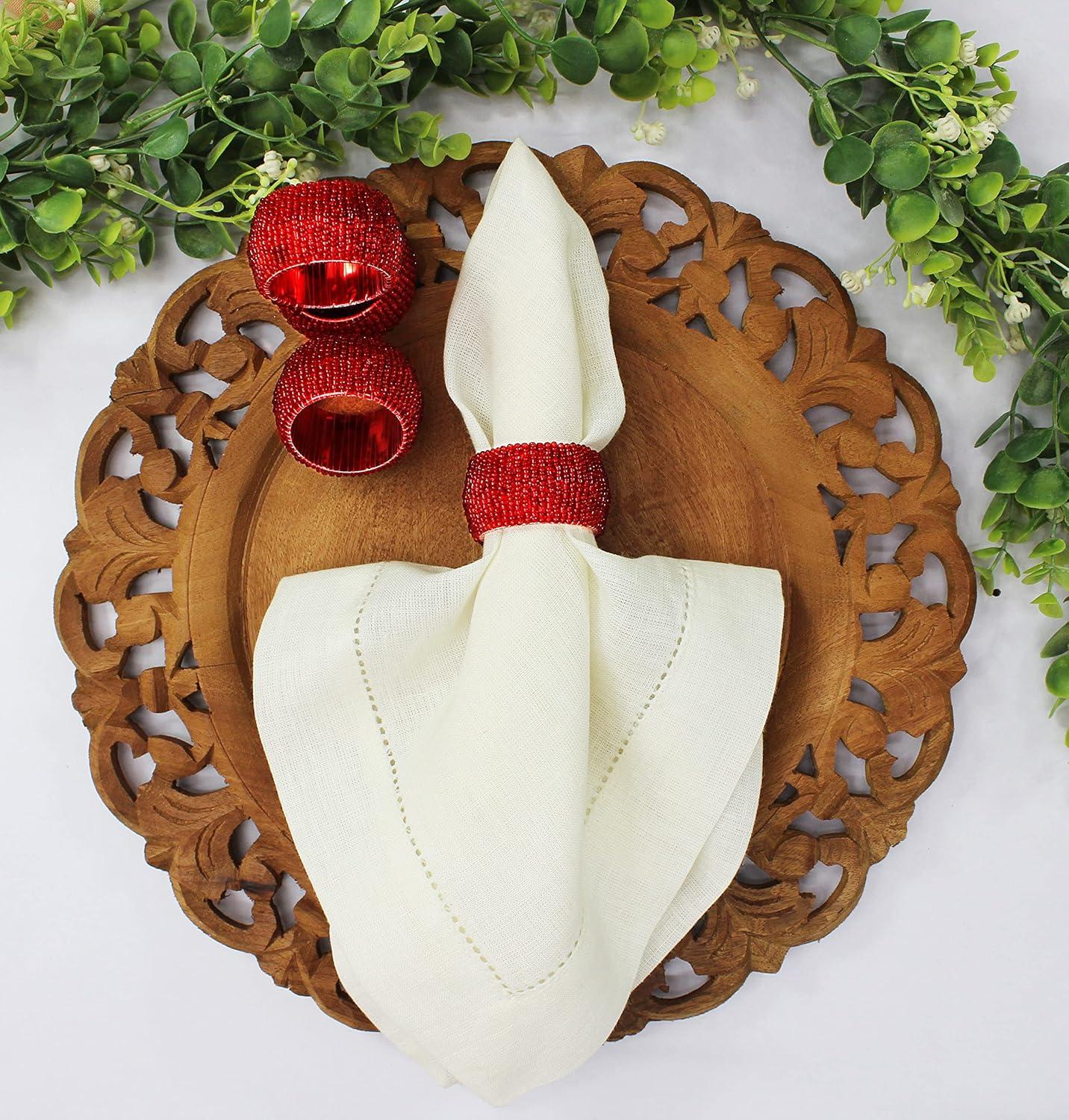 COTTON CRAFT Glitz Handmade Beaded Dining Table Napkin Rings – Set of 12 – Halloween Harvest Autumn Fall Thanksgiving Holiday Christmas Xmas Celebration Festive Party Gift Décor – Gold(Red – Beaded)