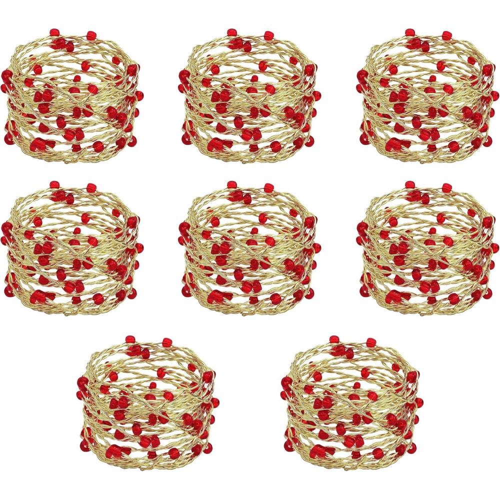 COTTON CRAFT Glitz Handmade Beaded Dining Table Napkin Rings – Set of 12 – Halloween Harvest Autumn Fall Thanksgiving Holiday Christmas Xmas Celebration Festive Party Gift Décor – Gold(Red Gold – Beaded)
