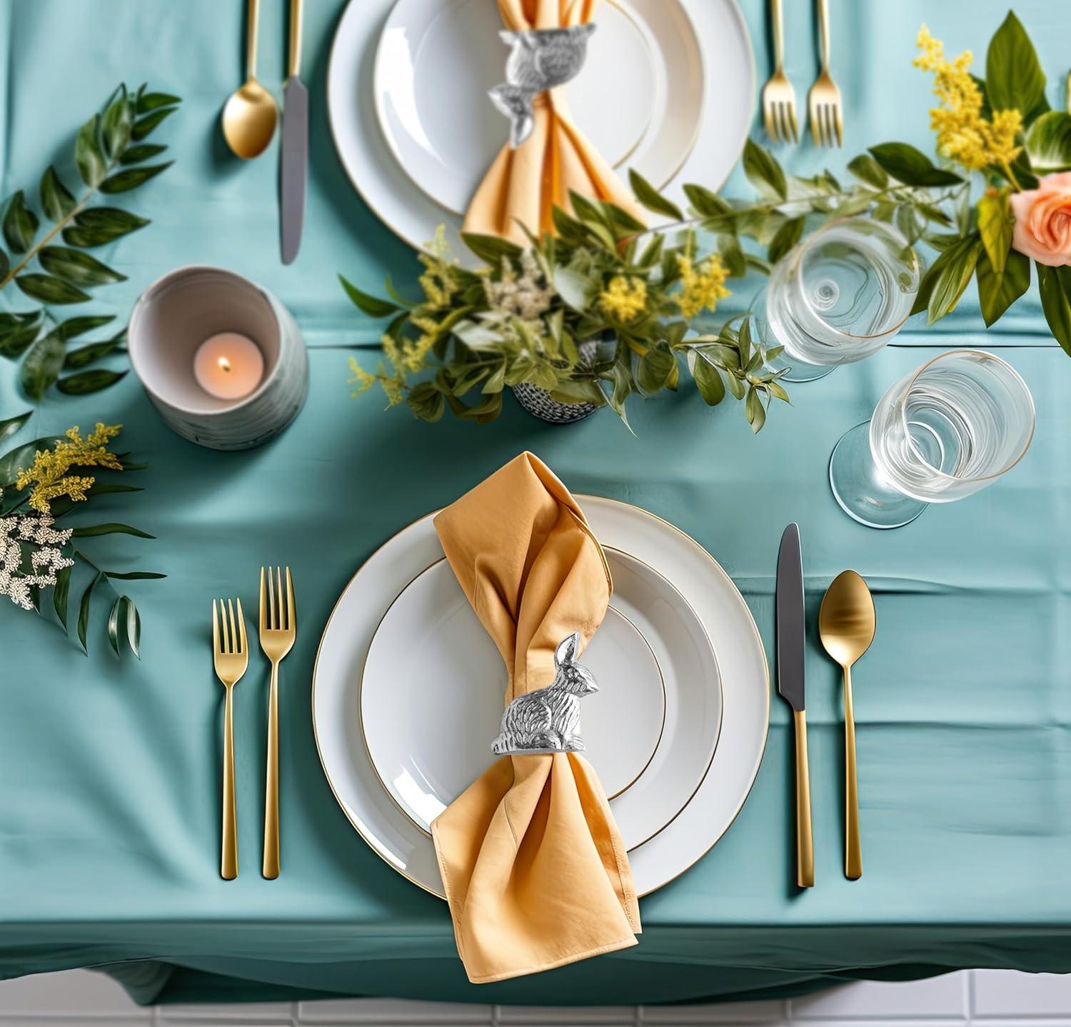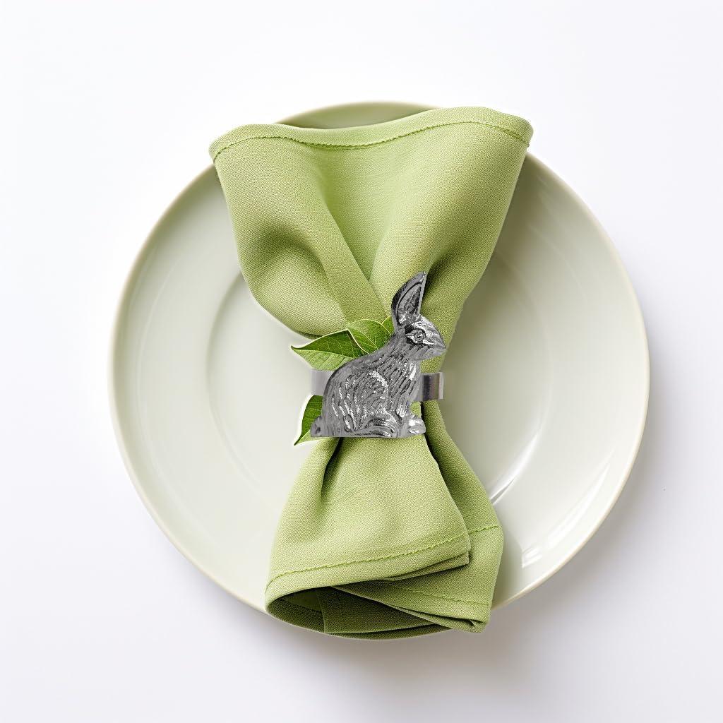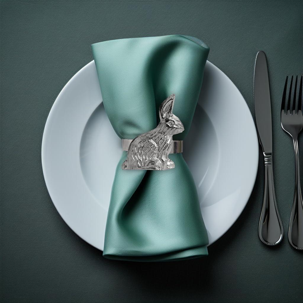 COTTON CRAFT Glitz Handmade Beaded Dining Table Napkin Rings – Set of 12 – Halloween Harvest Autumn Fall Thanksgiving Holiday Christmas Xmas Celebration Festive Party Gift Décor – Gold(Silver – Bunny Metal)
