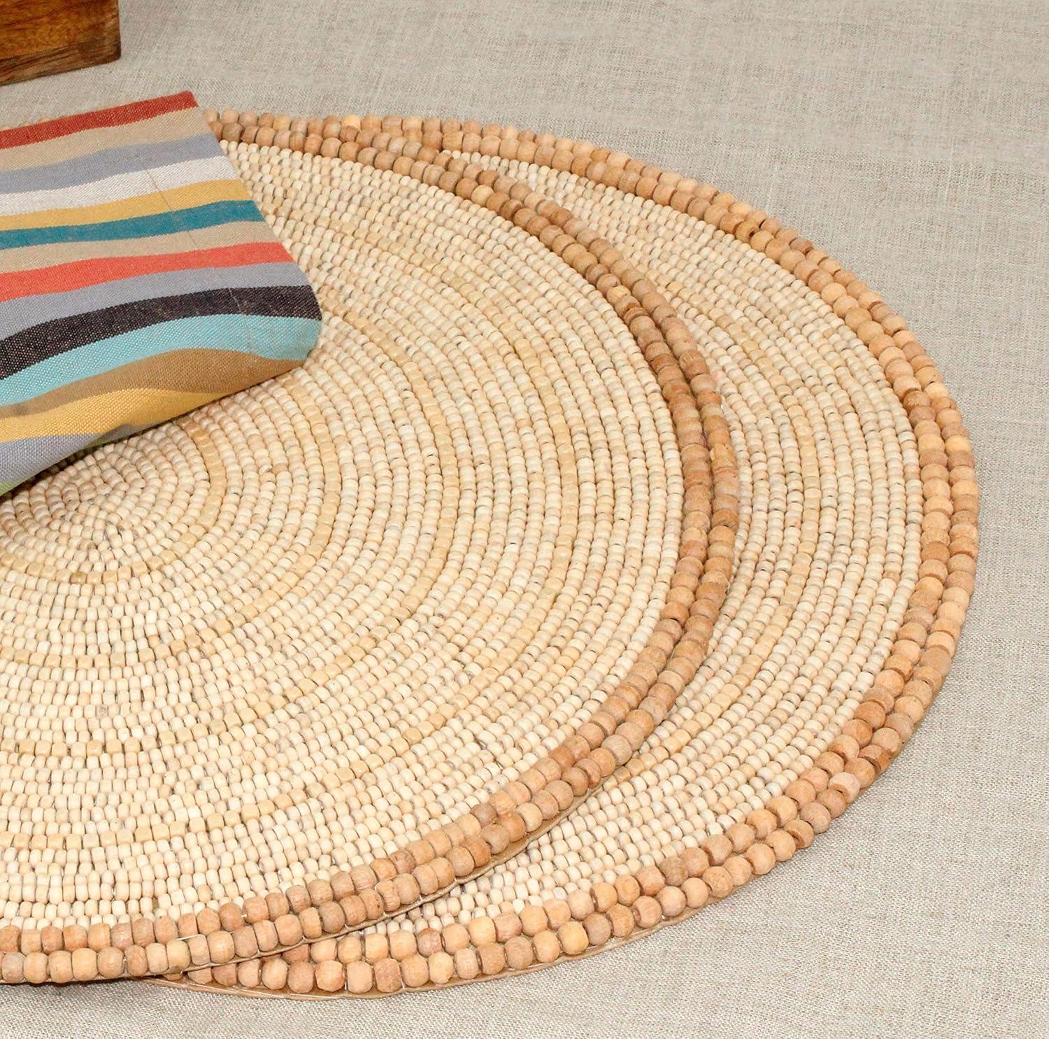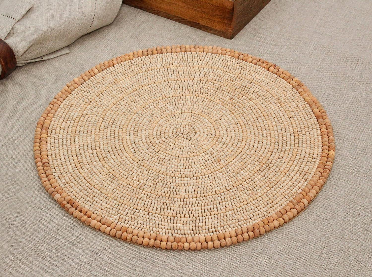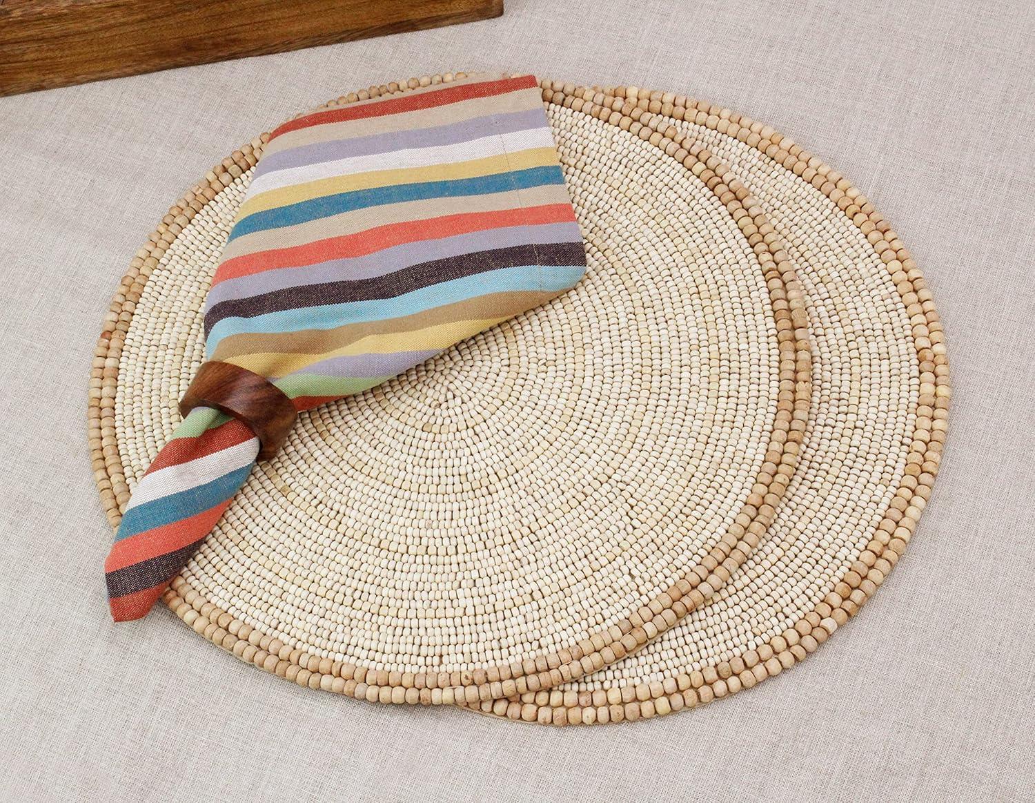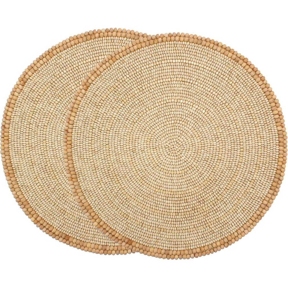 SET CONTENTS: Set includes Two (2) COTTON CRAFT Wood Round Beaded Charger Placemats in Natural, each measuring 13.5 inches round