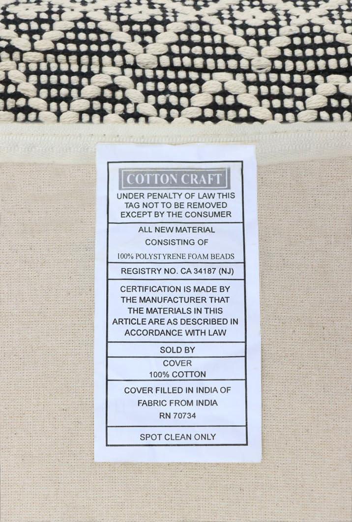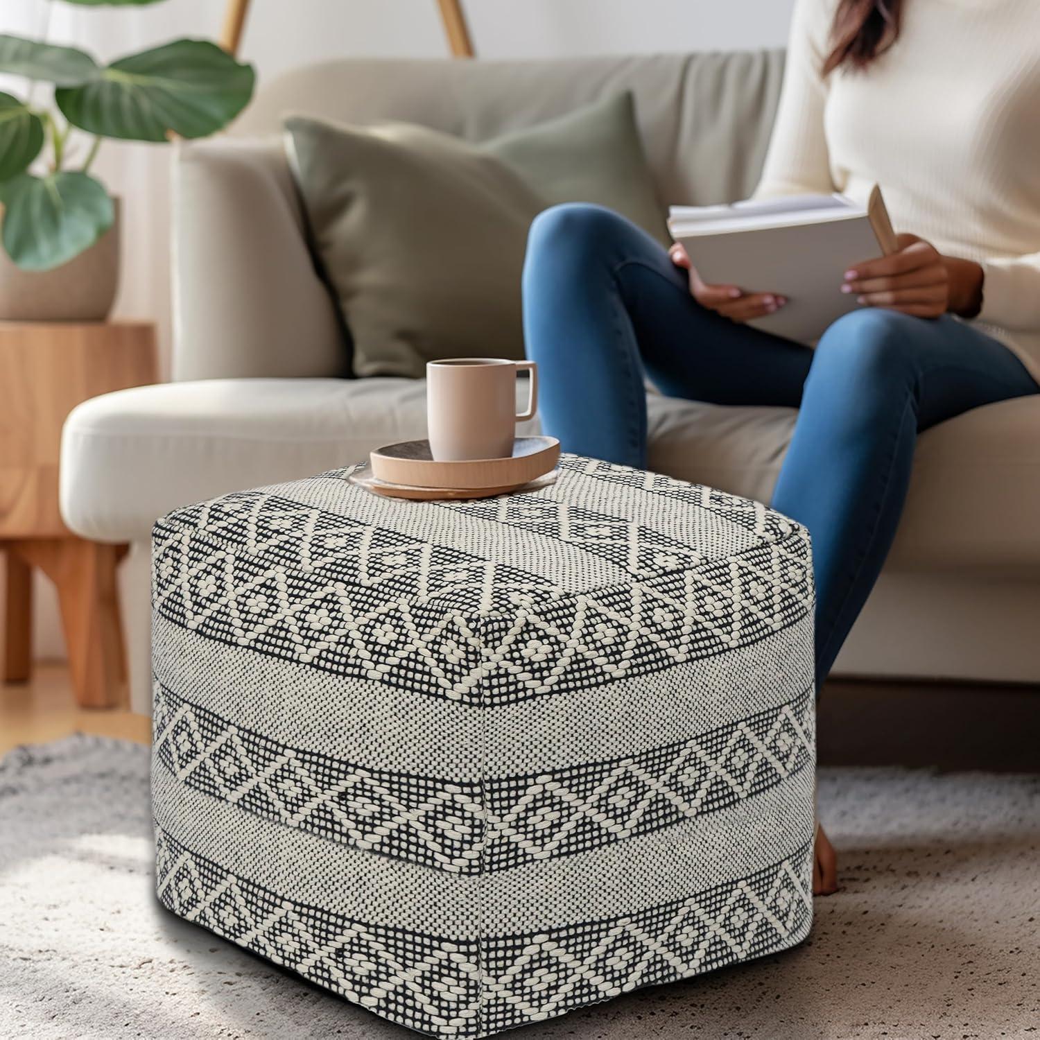 COTTON CRAFT Hand Tufted Pouf – Bedroom Dorm Home Accent – Foot Stool – Ottoman – Bean Bag – Versatile Modern Comfortable Prefilled Woven Cotton Square Pouf Footrest – 16x16x16 inches – Ivory(Ivory Black Stripe)