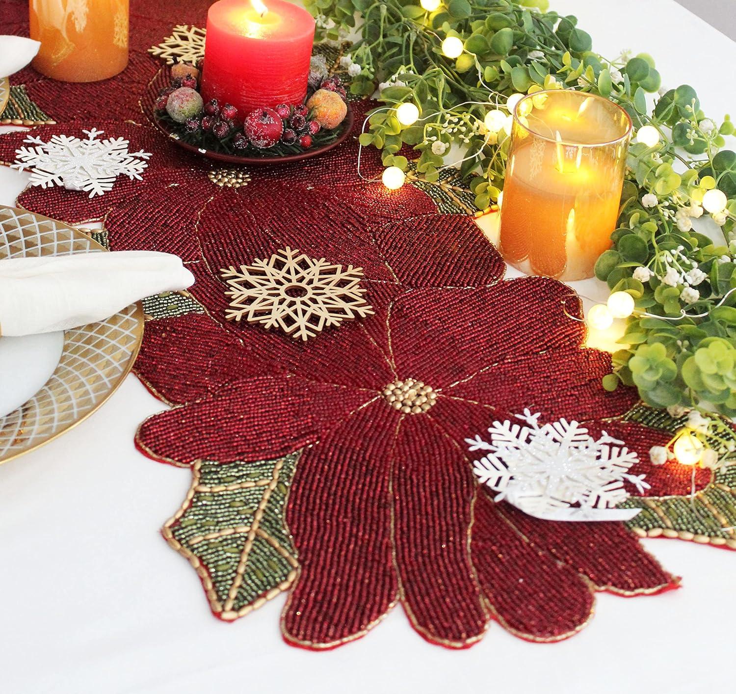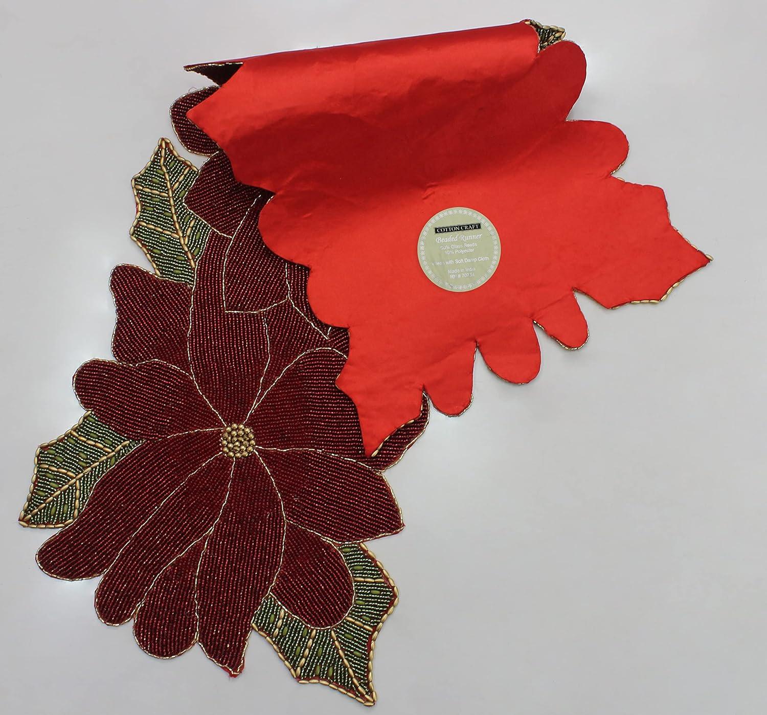COTTON CRAFT Happy Hunting Handmade Beaded Table Runner – Easter Tulips Spring Floral Bunny Rabbit – Luncheon Dinner Celebration Festive Party Tabletop Décor Tablerunner – 13×36 – Easter Spring Multi(Poinsettia)