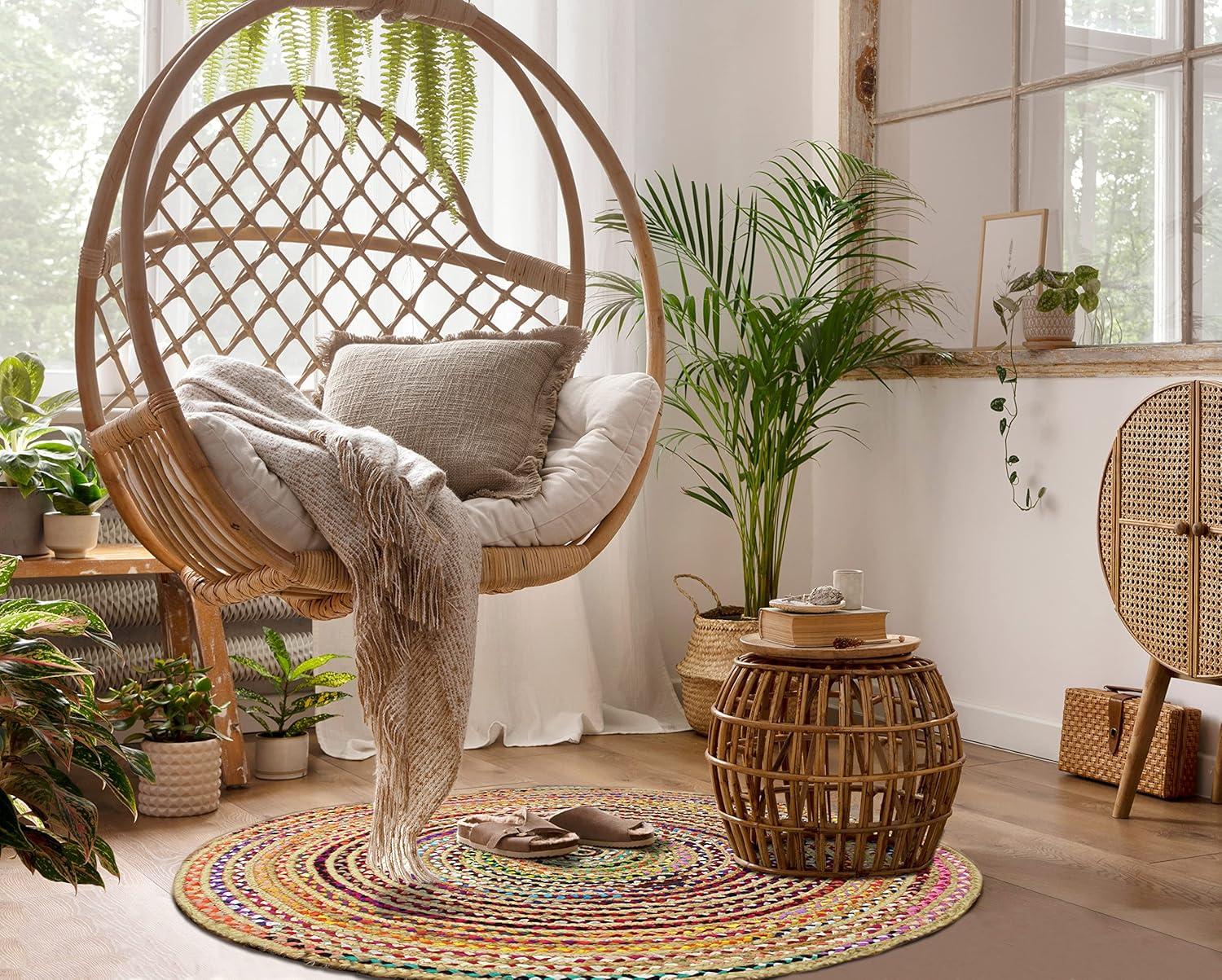 COTTON CRAFT Jute Chindi Braid Rag Rug – Boho Farmhouse Rustic Area Accent Throw Rug – Handwoven Reversible Natural Recycled Cotton – Living Room Den Study Home Décor Gift – 4 Feet Round – Multi Color(3′ (Round))