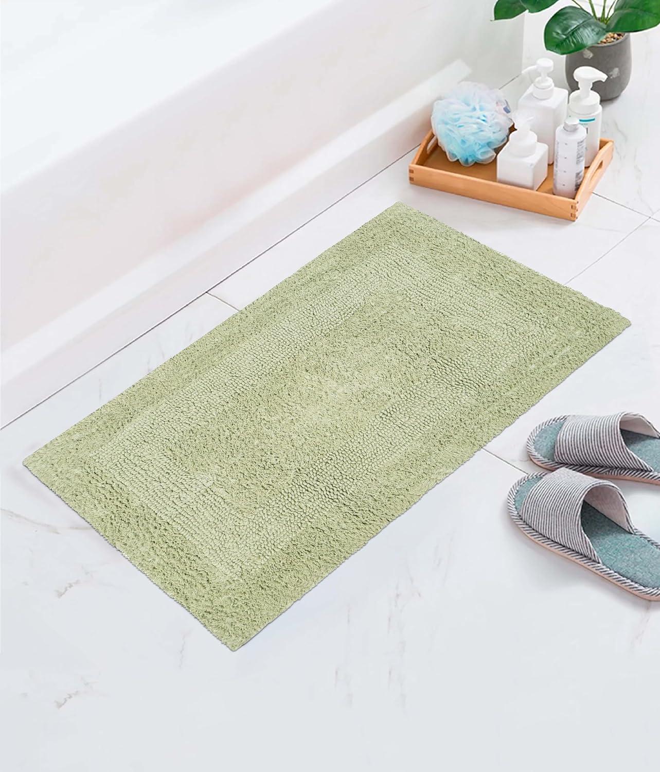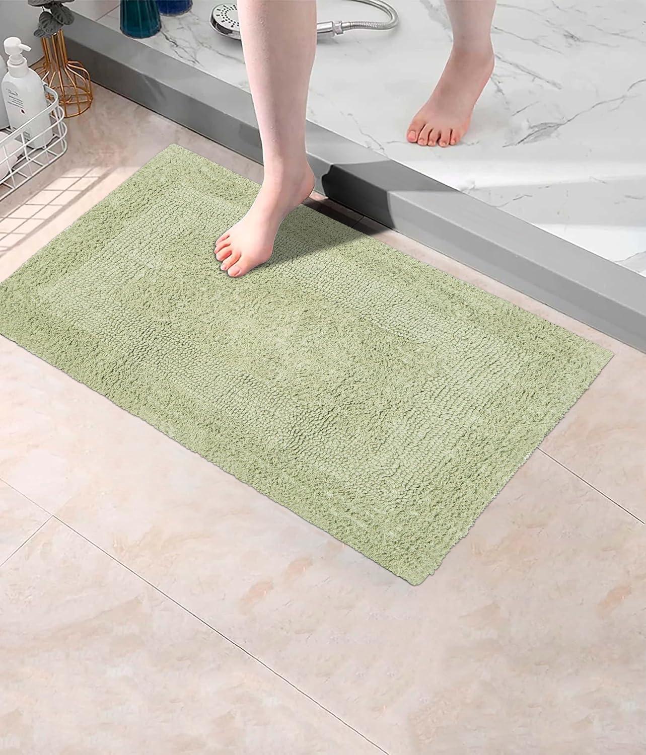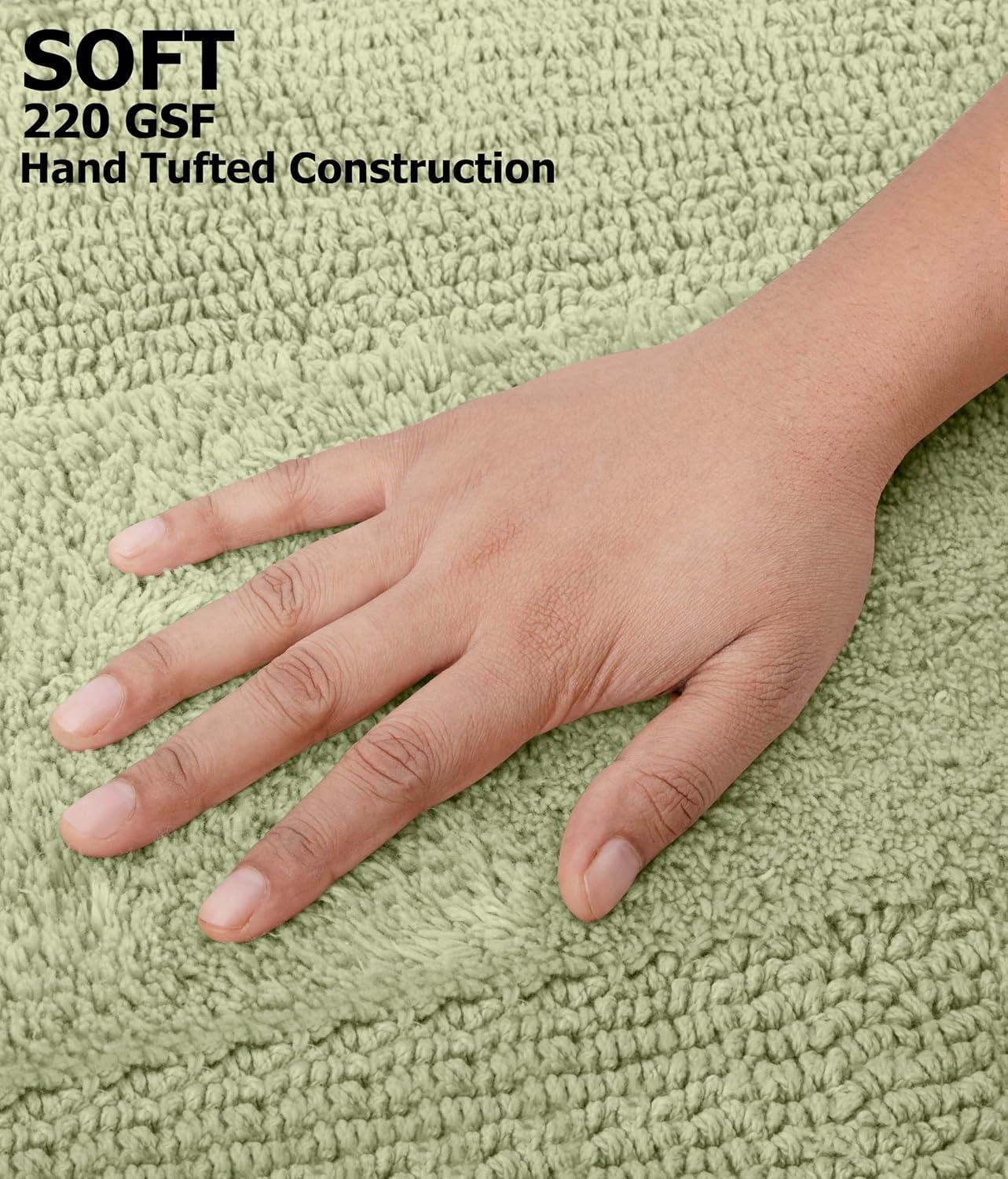 COTTON CRAFT Luxurious Bath Mat Rug – Set of 2 Reversible Heavyweight Step Out Bath Mats for Bathroom Floor, Tub and Shower – Pure Cotton Soft Plush Absorbent Hand Tufted Mat – 17 x 24 – Charcoal Grey(Sage)