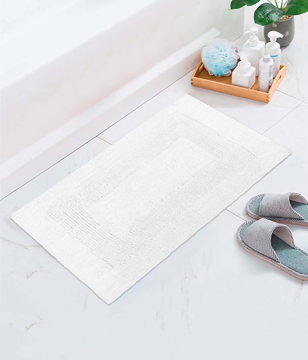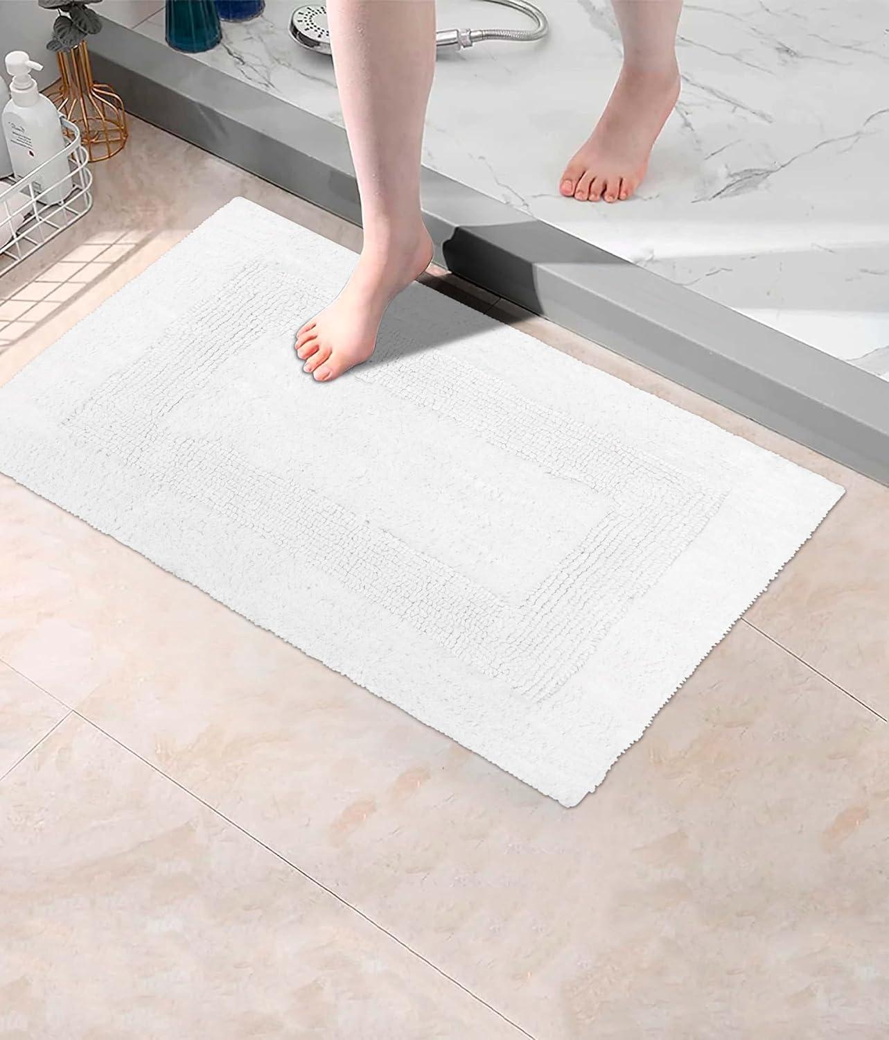 Get the COTTON CRAFT Luxurious Bath Mat Rug – Set of 2 Reversible Heavyweight Step Out Bath Mats for Bathroom Floor, Tub and Shower – Pure Cotton Soft Plush Absorbent Hand Tufted Mat – 17 x 24 – Charcoal Grey(White) you want at a price you can afford with our markdown sale.