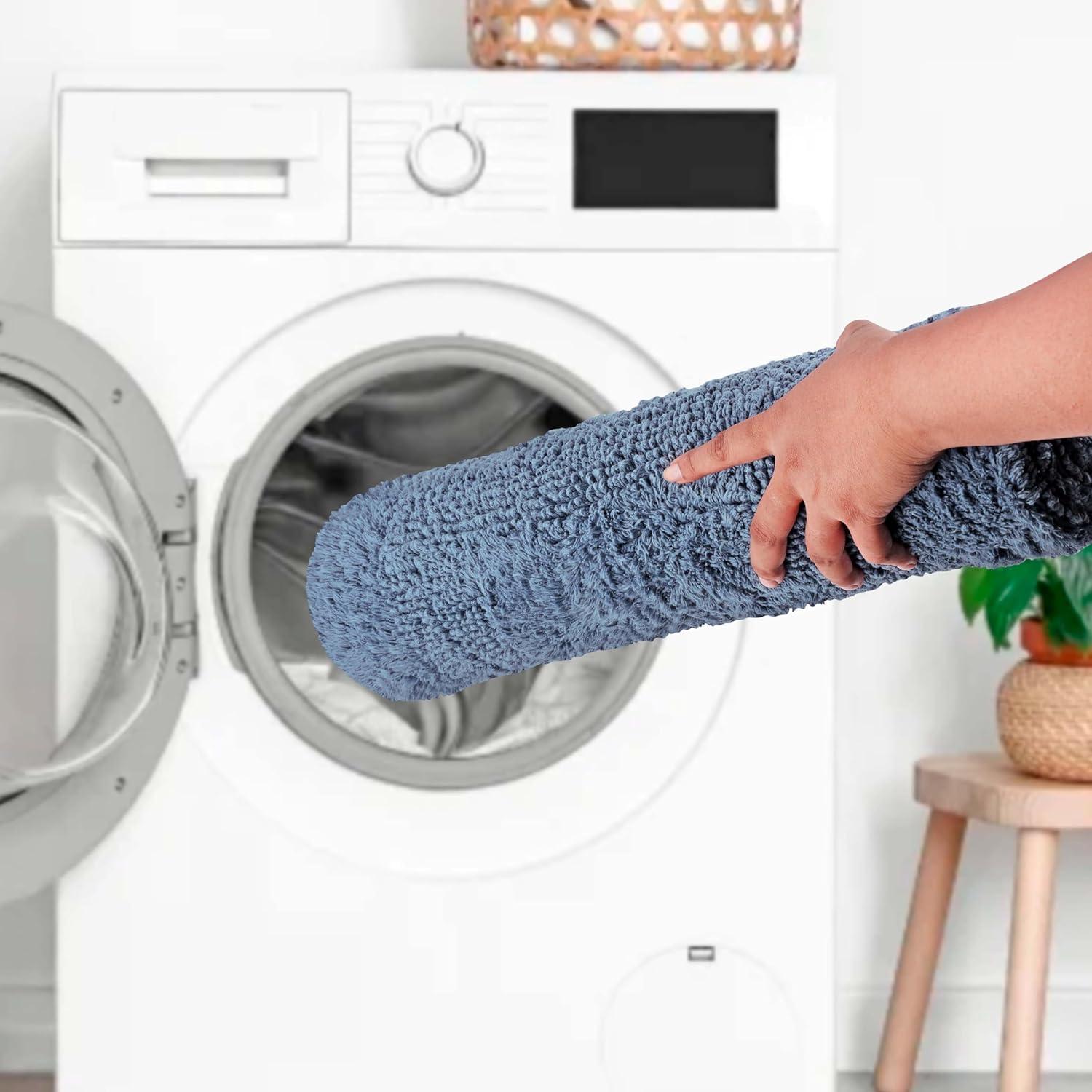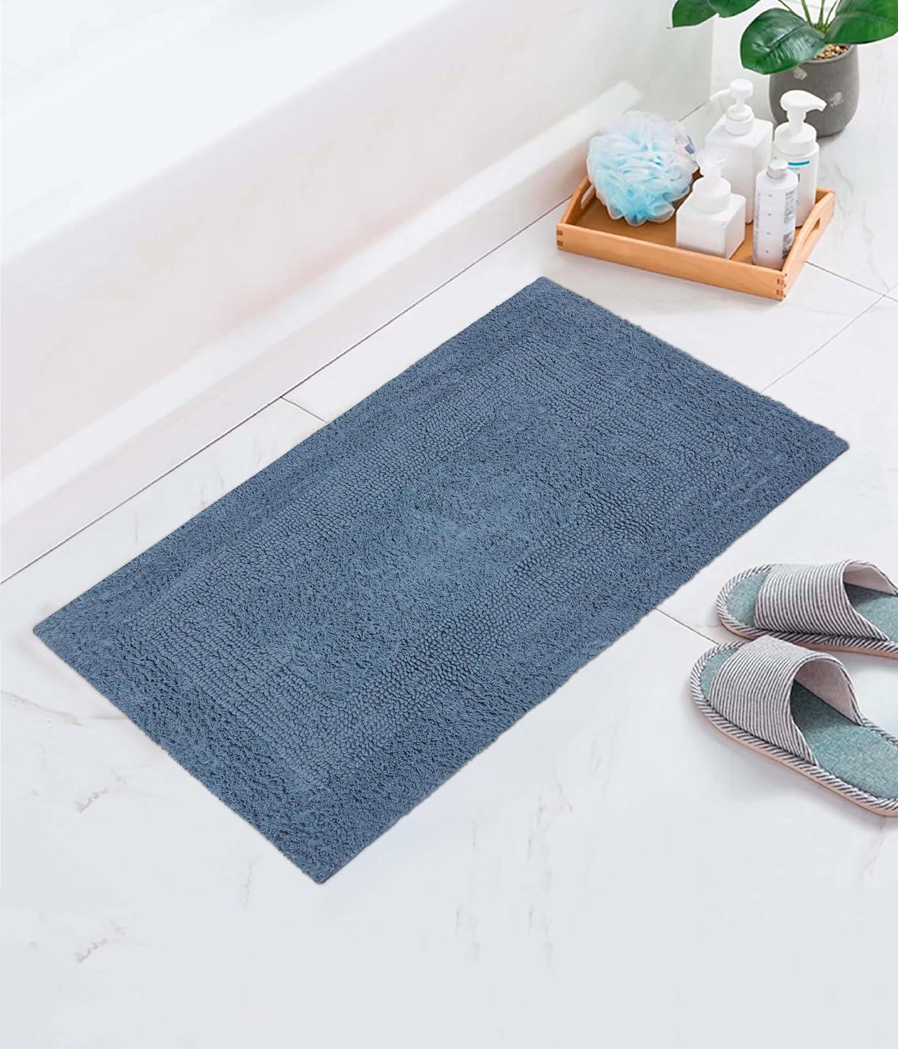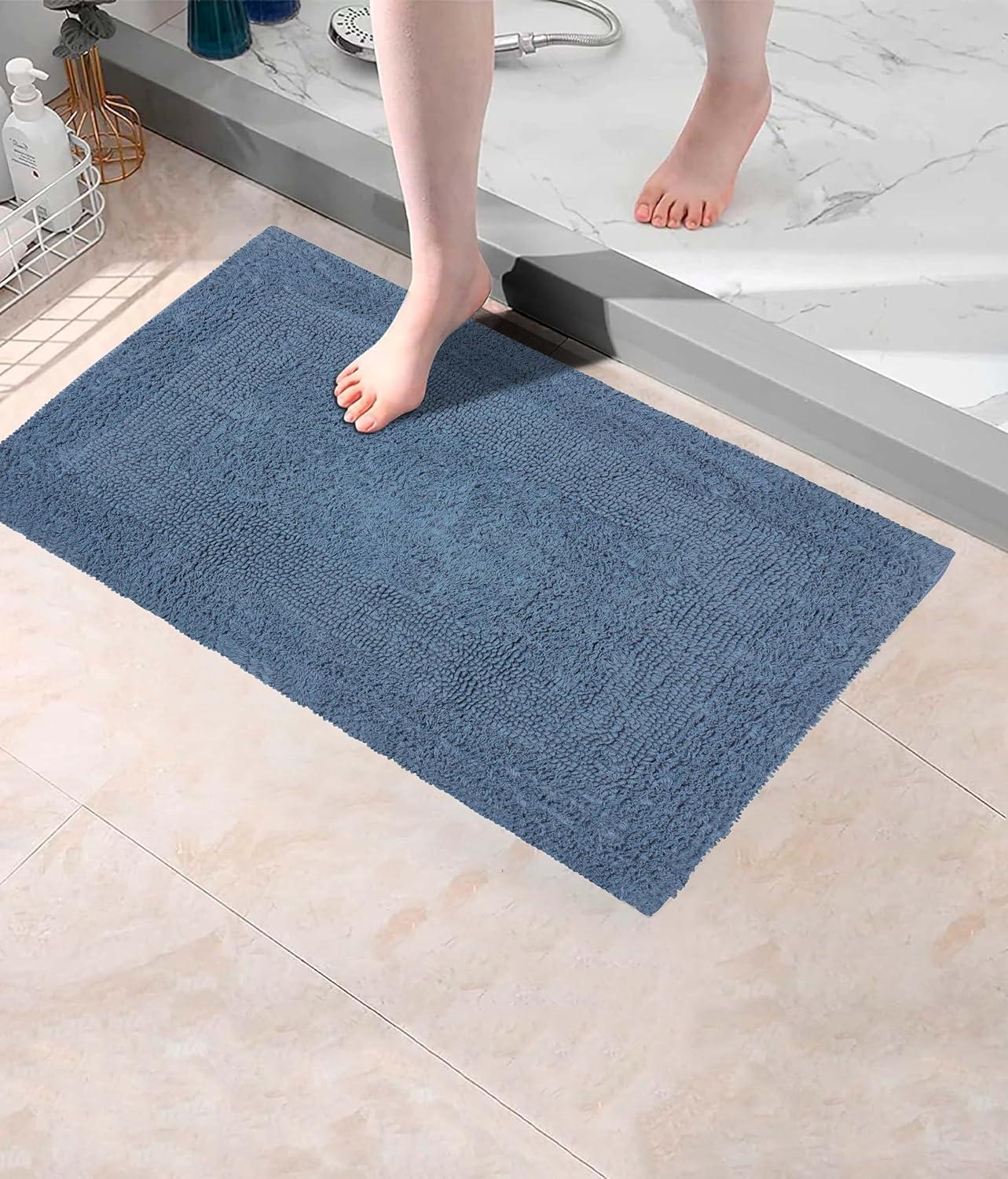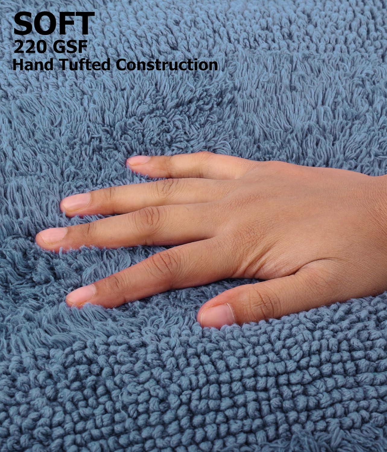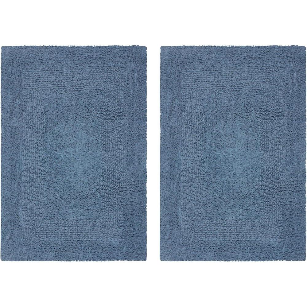 COTTON CRAFT Luxurious Bath Mat Rug – Set of 2 Reversible Heavyweight Step Out Bath Mats for Bathroom Floor, Tub and Shower – Pure Cotton Soft Plush Absorbent Hand Tufted Mat – 17 x 24 – Charcoal Grey(Azure Blue)