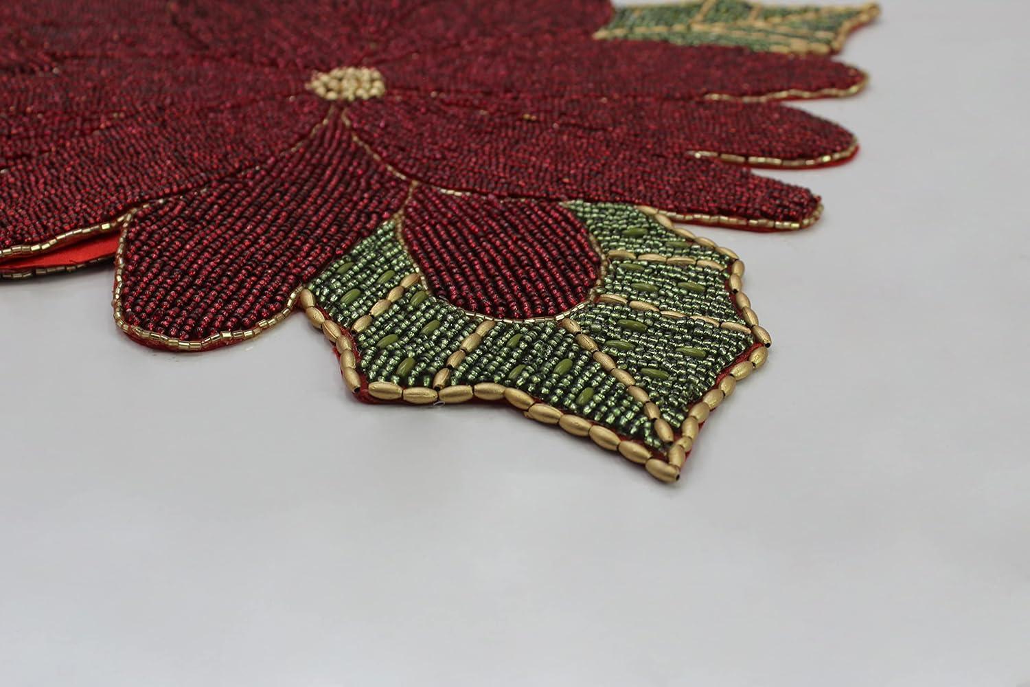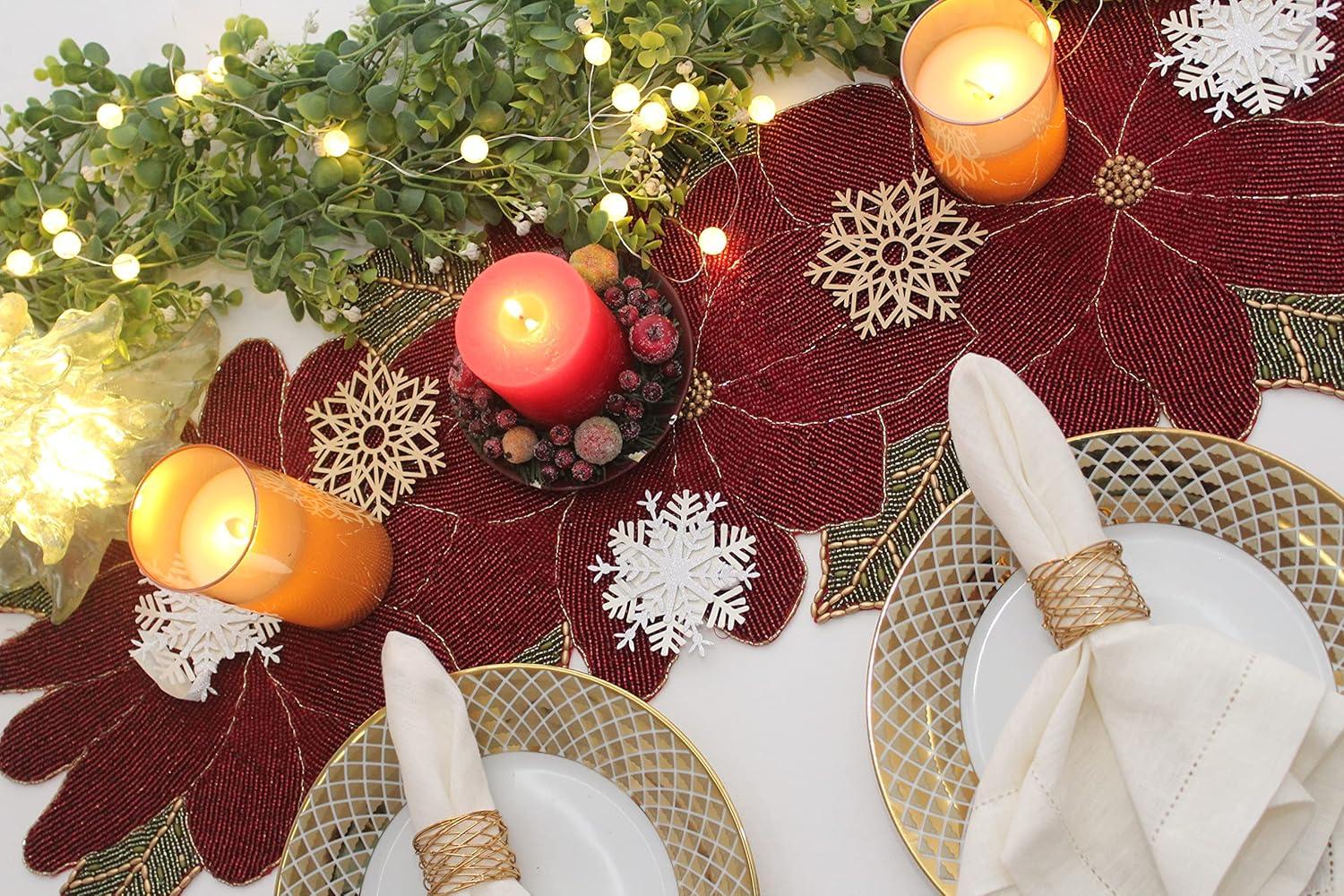 COTTON CRAFT Mila Scroll Handmade Beaded Table Runner – Halloween Harvest Autumn Fall Thanksgiving Holiday Christmas Xmas Celebration Festive Party Tabletop Décor Tablerunner – 13×36 Ivory & Silver(Poinsettia)