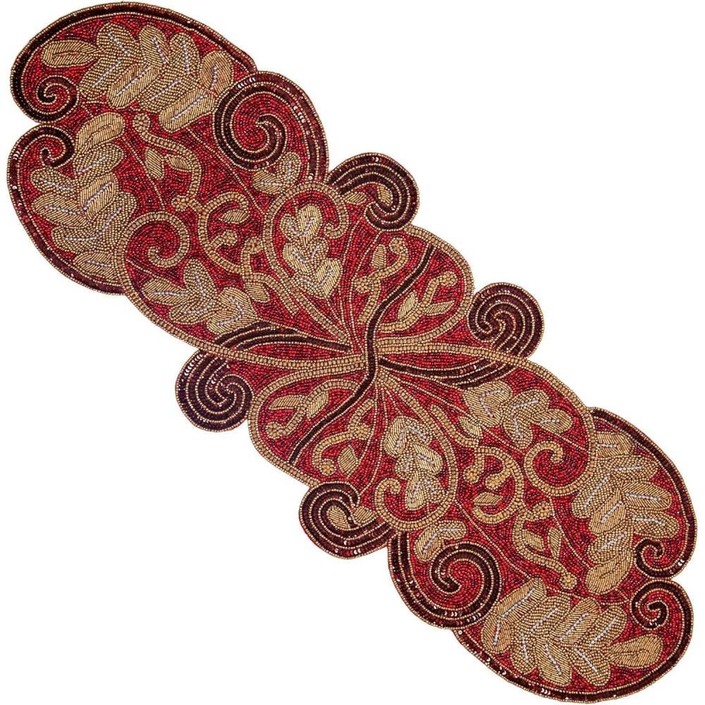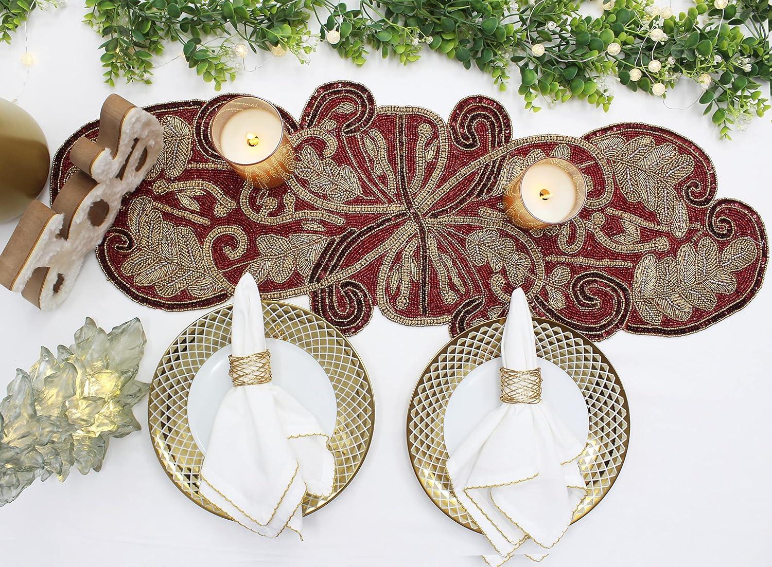 COTTON CRAFT Mila Scroll Handmade Beaded Table Runner – Halloween Harvest Autumn Fall Thanksgiving Holiday Christmas Xmas Celebration Festive Party Tabletop Décor Tablerunner – 13×36 Ivory & Silver(Scroll Jewel Tones)