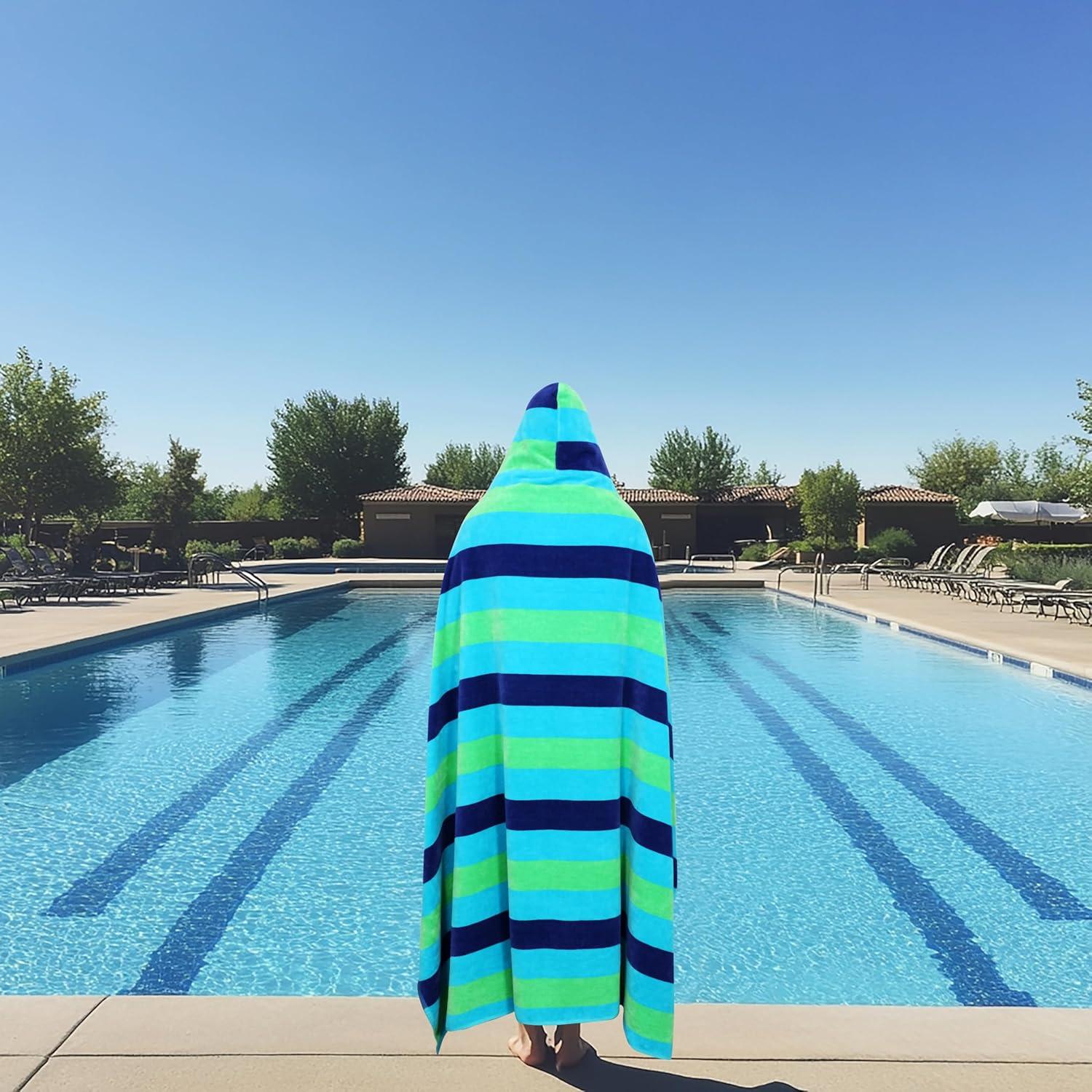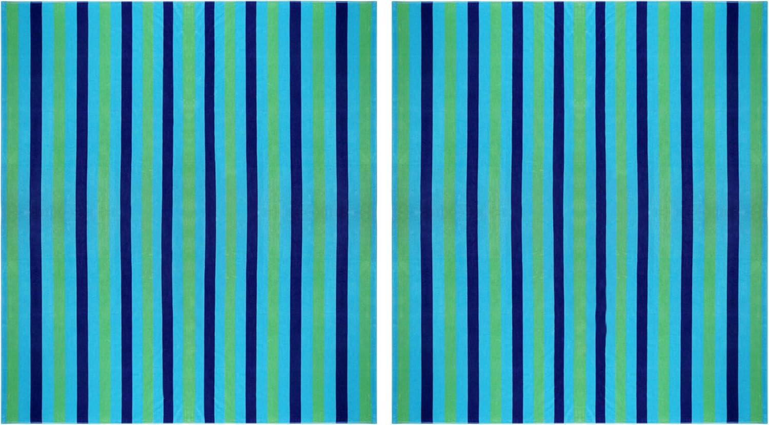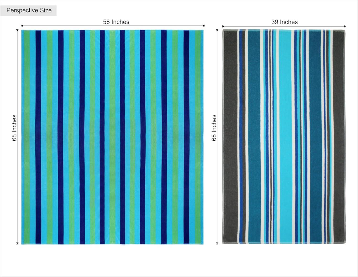 COTTON CRAFT Oversized Extra Wide XL Beach Blanket Towel for Two – 58×68-100% Cotton Velour – Big & Huge – Pool Picnic Bath Jacquard Thick Plush Super Soft Luxury – 450 GSM – Summer Trellis Pool Blue(Cabana Stripe – Blue)