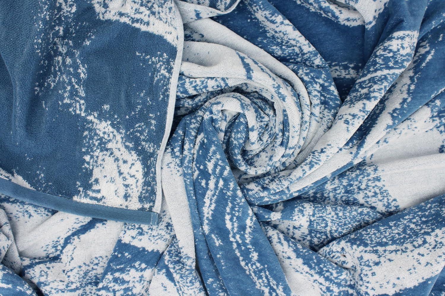 COTTON CRAFT Oversized Extra Wide XL Beach Blanket Towel for Two – 58×68-100% Cotton Velour – Big & Huge – Pool Picnic Bath Jacquard Thick Plush Super Soft Luxury – 450 GSM – Summer Trellis Pool Blue(Surf Blue)