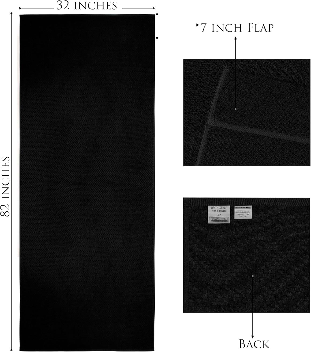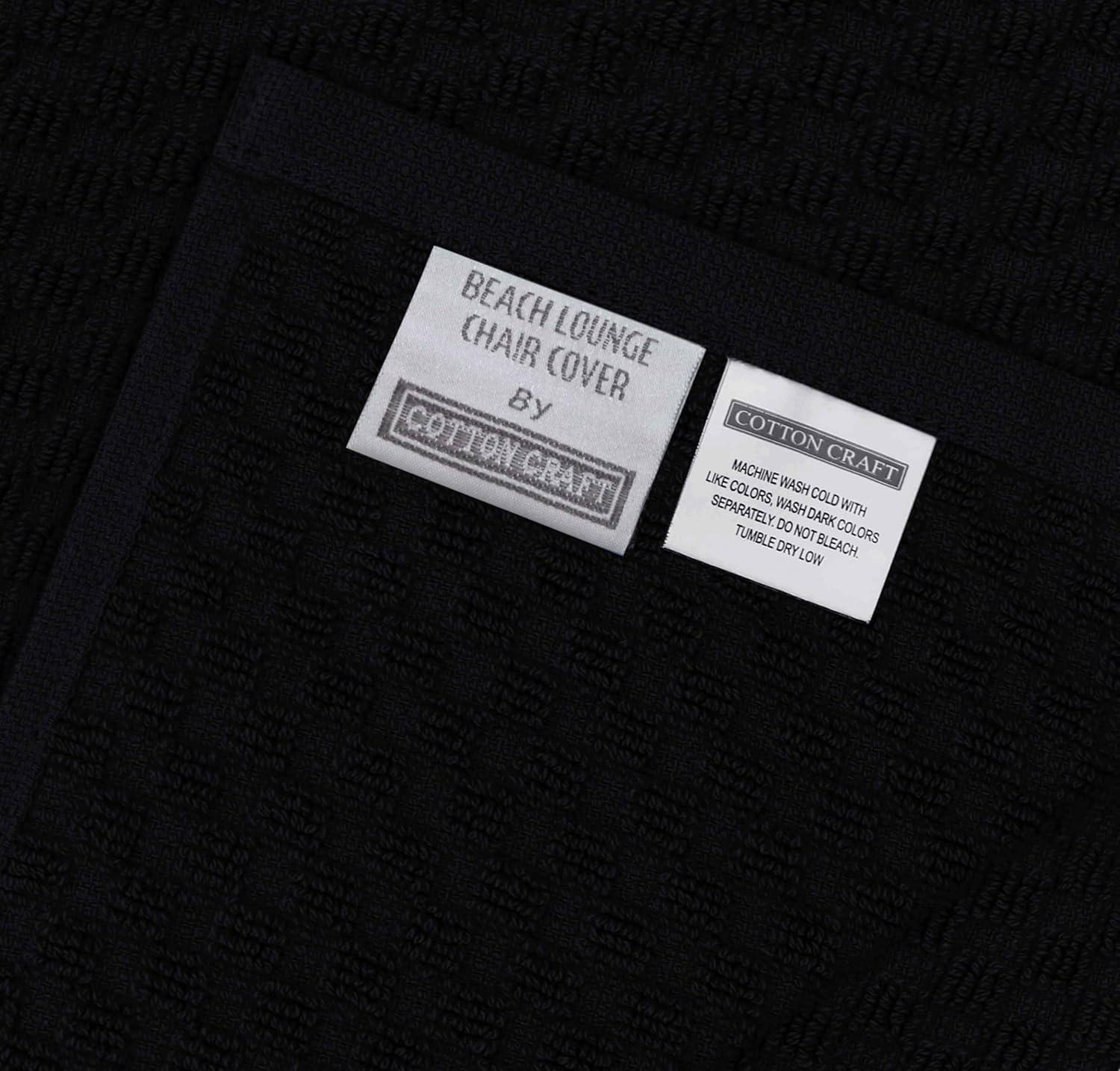 COTTON CRAFT Pool Lounge Chair Cover – 2 Pack 100% Cotton Soft Ringspun Terry Towel Chaise Patio Picnic Spa Sun Lounger Beach Lounge Chair Cover – Oversized 32 in W x 82 in L x 7 in Pocket – Navy Blue(Waffle – Black)
