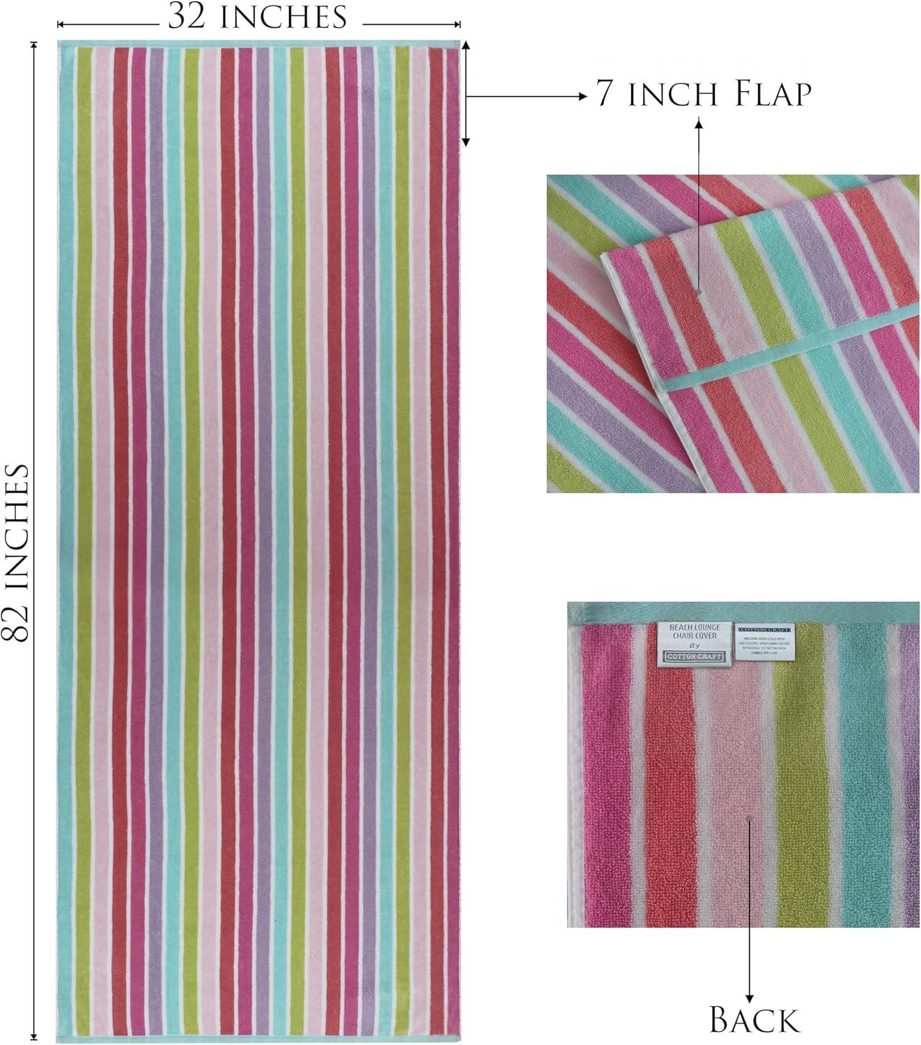 SET INCLUDES: This set includes two of COTTON CRAFT's terry cotton lounge chair covers each made from 100% cotton in our classic cabana stripe.
