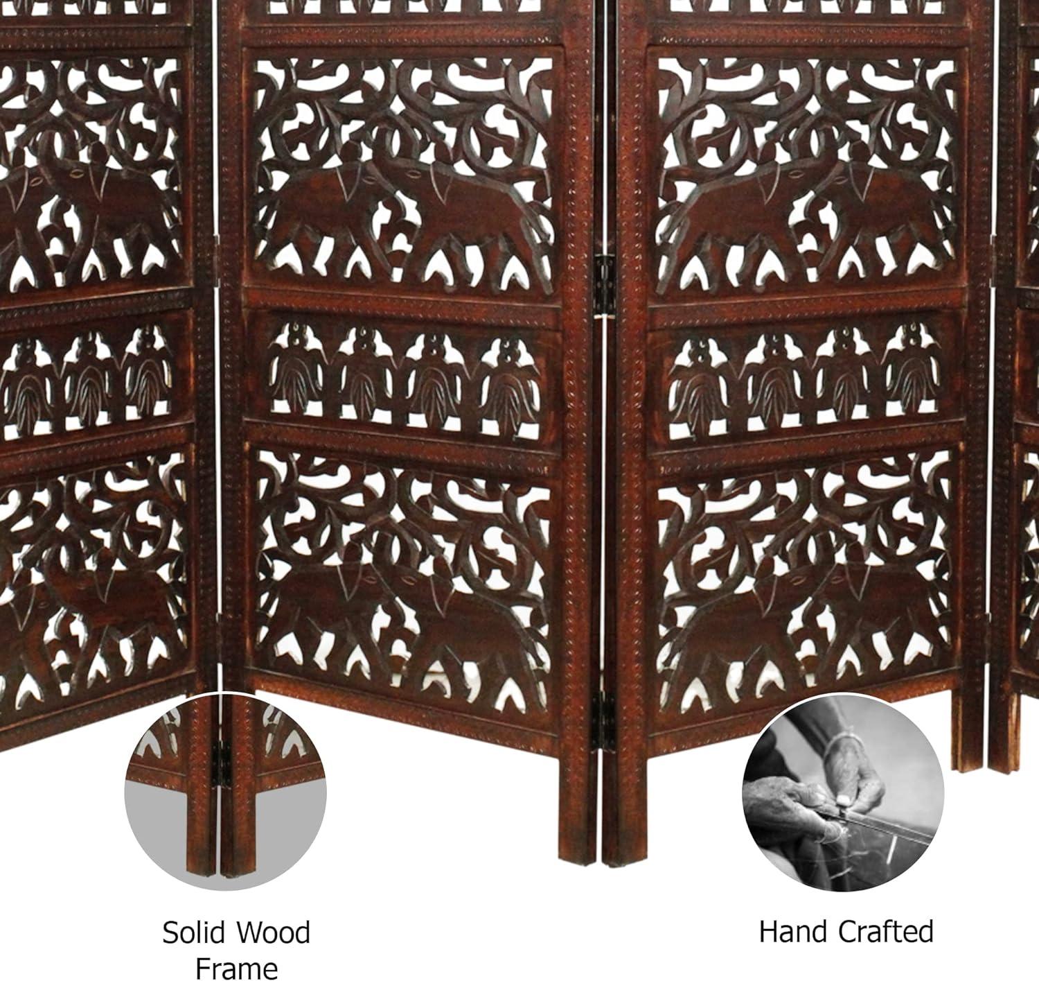 COTTON CRAFT Room Divider Wood Floor Screen – Kamal Antique White 4 Folding Panel 72×80 – Portable Reversible Functional Decorative Partition – Reversible Boho Freestanding Small Spaces Privacy(Hathi – Walnut Brown)