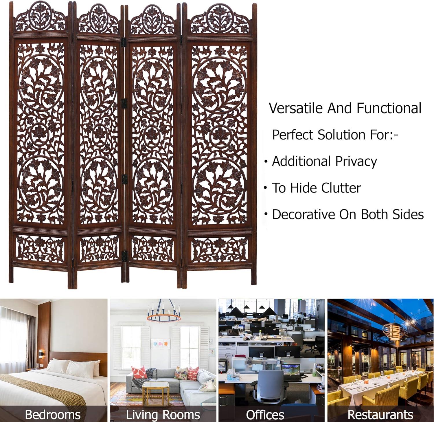 COTTON CRAFT Room Divider Wood Floor Screen – Kamal Antique White 4 Folding Panel 72×80 – Portable Reversible Functional Decorative Partition – Reversible Boho Freestanding Small Spaces Privacy(Kamal – Antique Brown)
