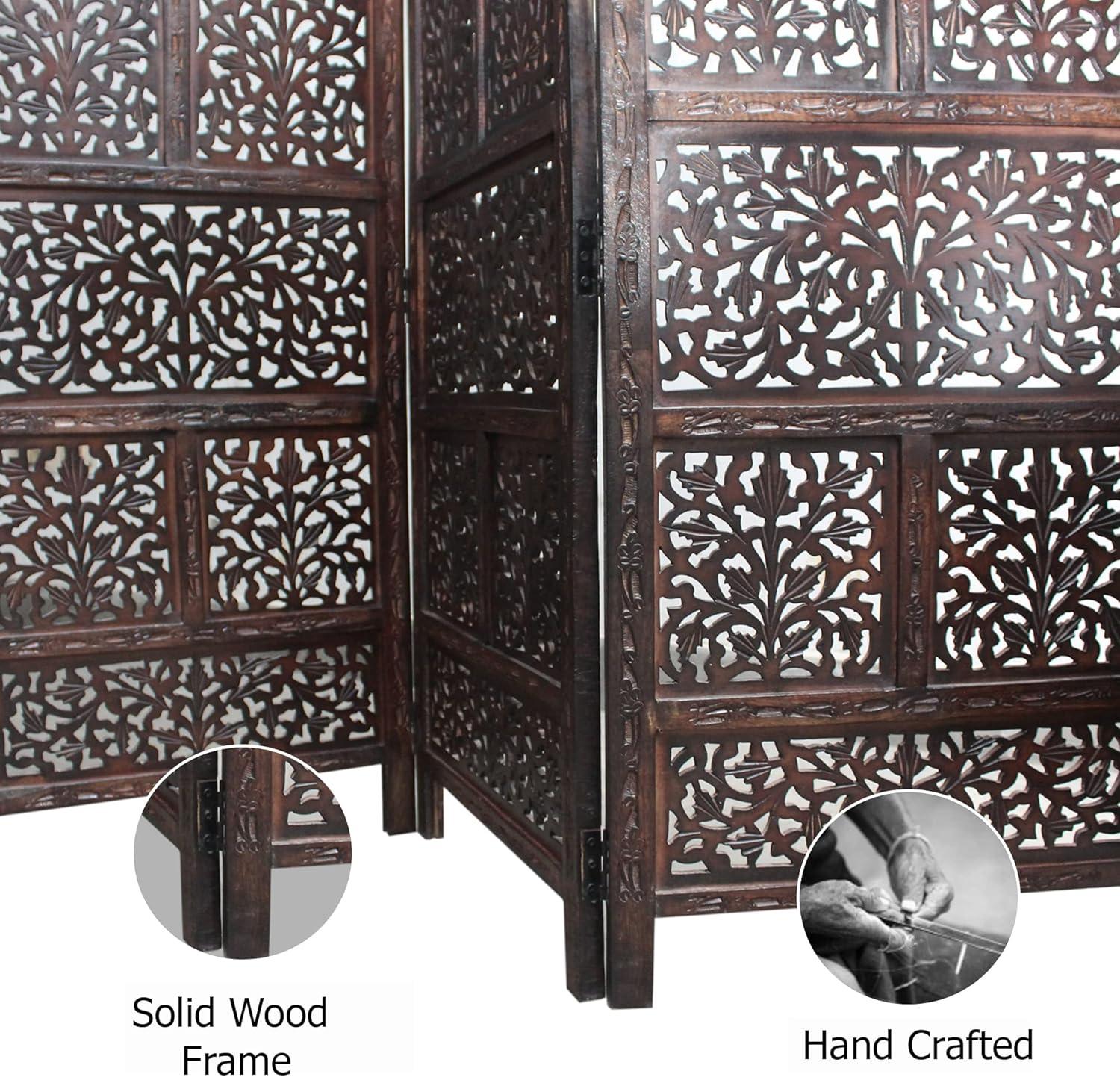 COTTON CRAFT Room Divider Wood Floor Screen – Kamal Antique White 4 Folding Panel 72×80 – Portable Reversible Functional Decorative Partition – Reversible Boho Freestanding Small Spaces Privacy(Mahanadi – Antique Brown)