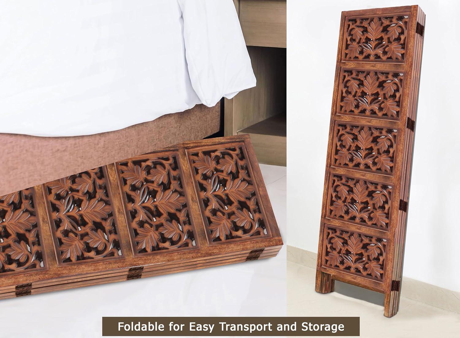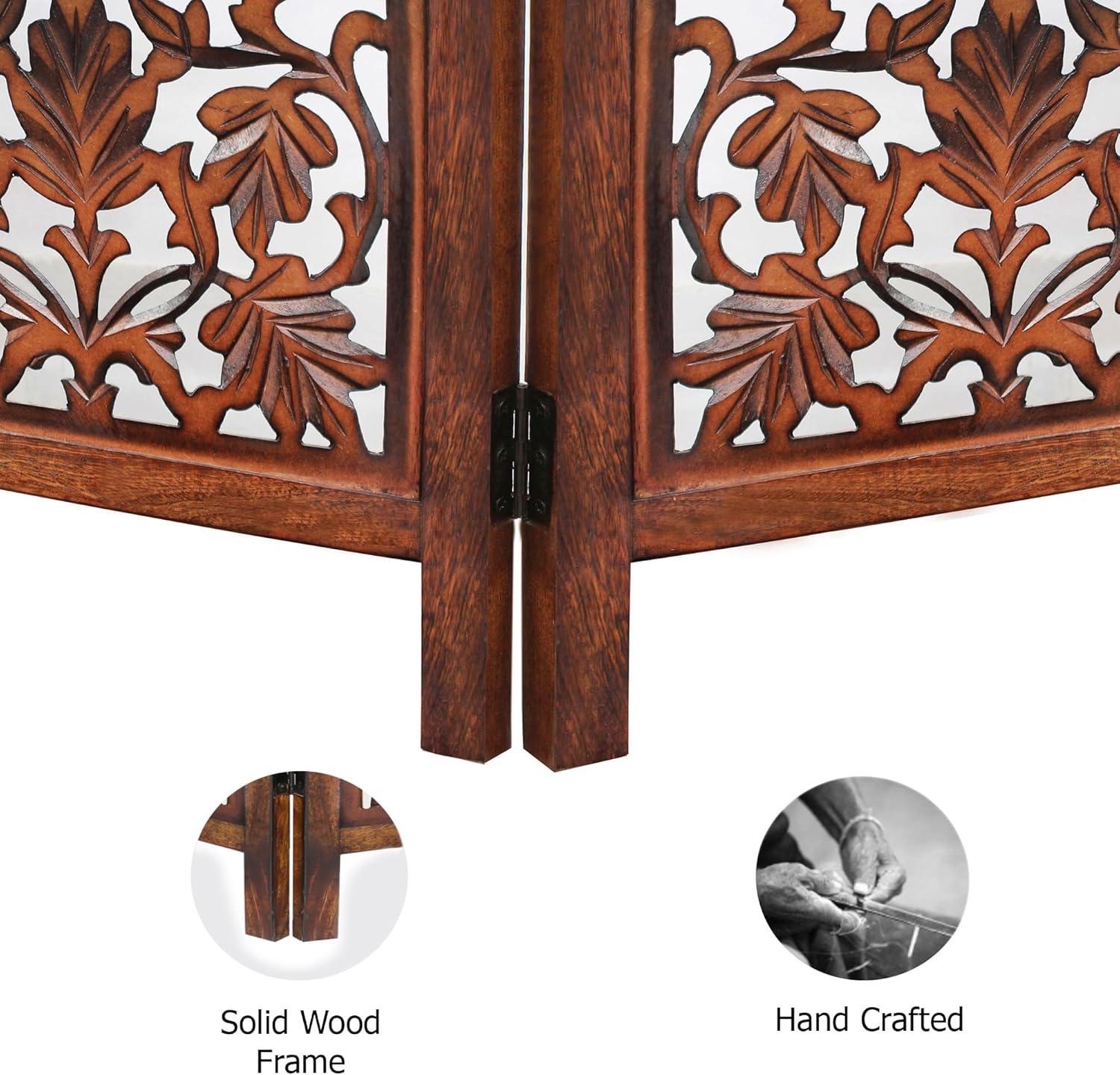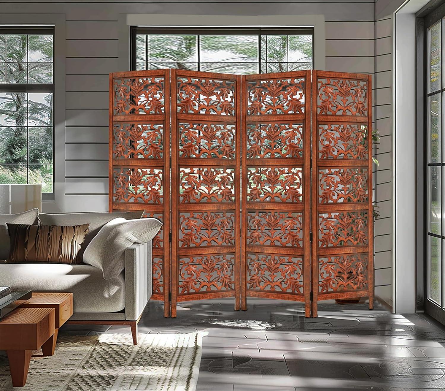 COTTON CRAFT Room Divider Wood Floor Screen – Kamal Antique White 4 Folding Panel 72×80 – Portable Reversible Functional Decorative Partition – Reversible Boho Freestanding Small Spaces Privacy(Padma – Brown)