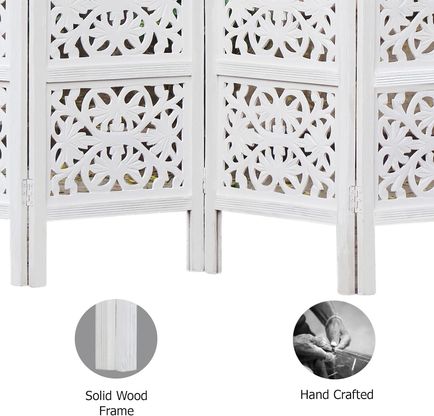 COTTON CRAFT Room Divider Wood Floor Screen – Kamal Antique White 4 Folding Panel 72×80 – Portable Reversible Functional Decorative Partition – Reversible Boho Freestanding Small Spaces Privacy(Rania – Antique White)