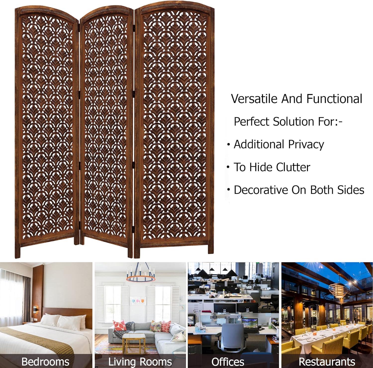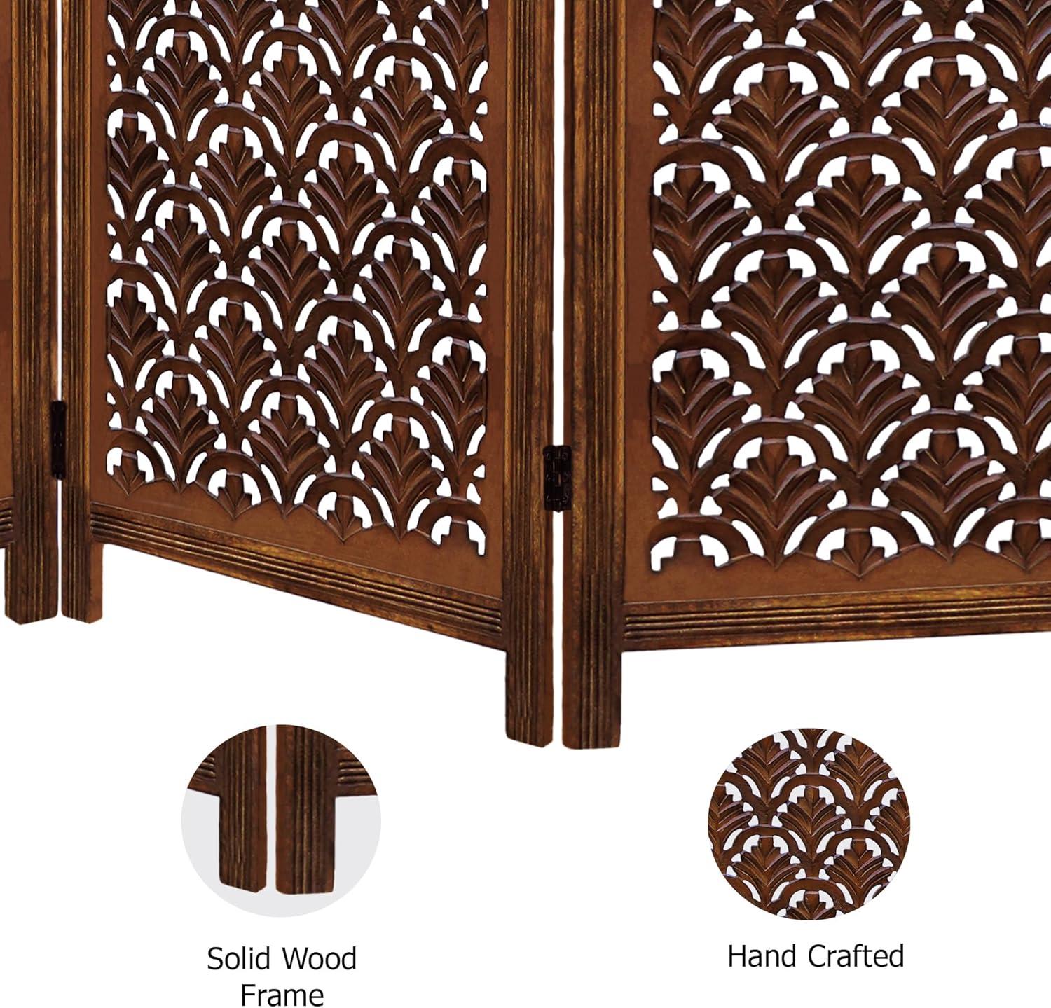 COTTON CRAFT Room Divider Wood Floor Screen – Kamal Antique White 4 Folding Panel 72×80 – Portable Reversible Functional Decorative Partition – Reversible Boho Freestanding Small Spaces Privacy(Taj – Antique Brown)