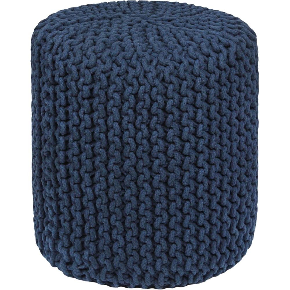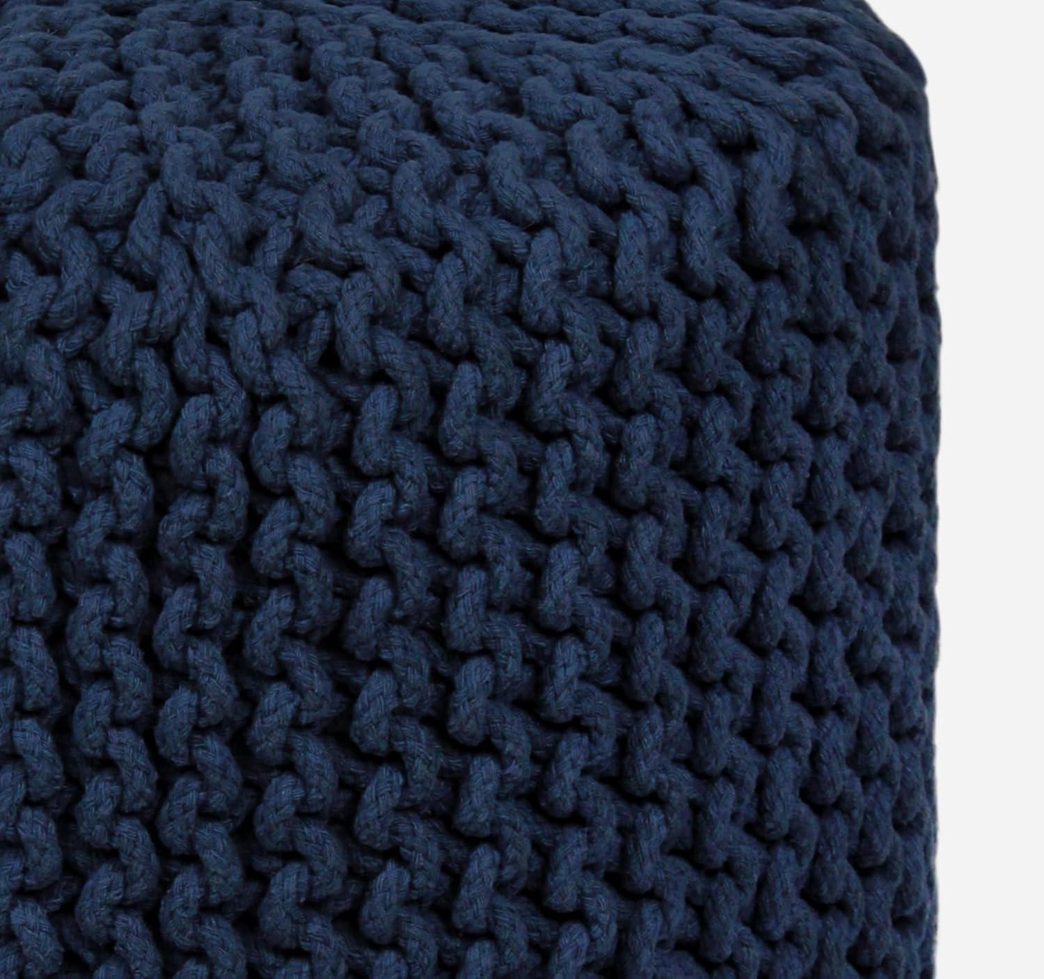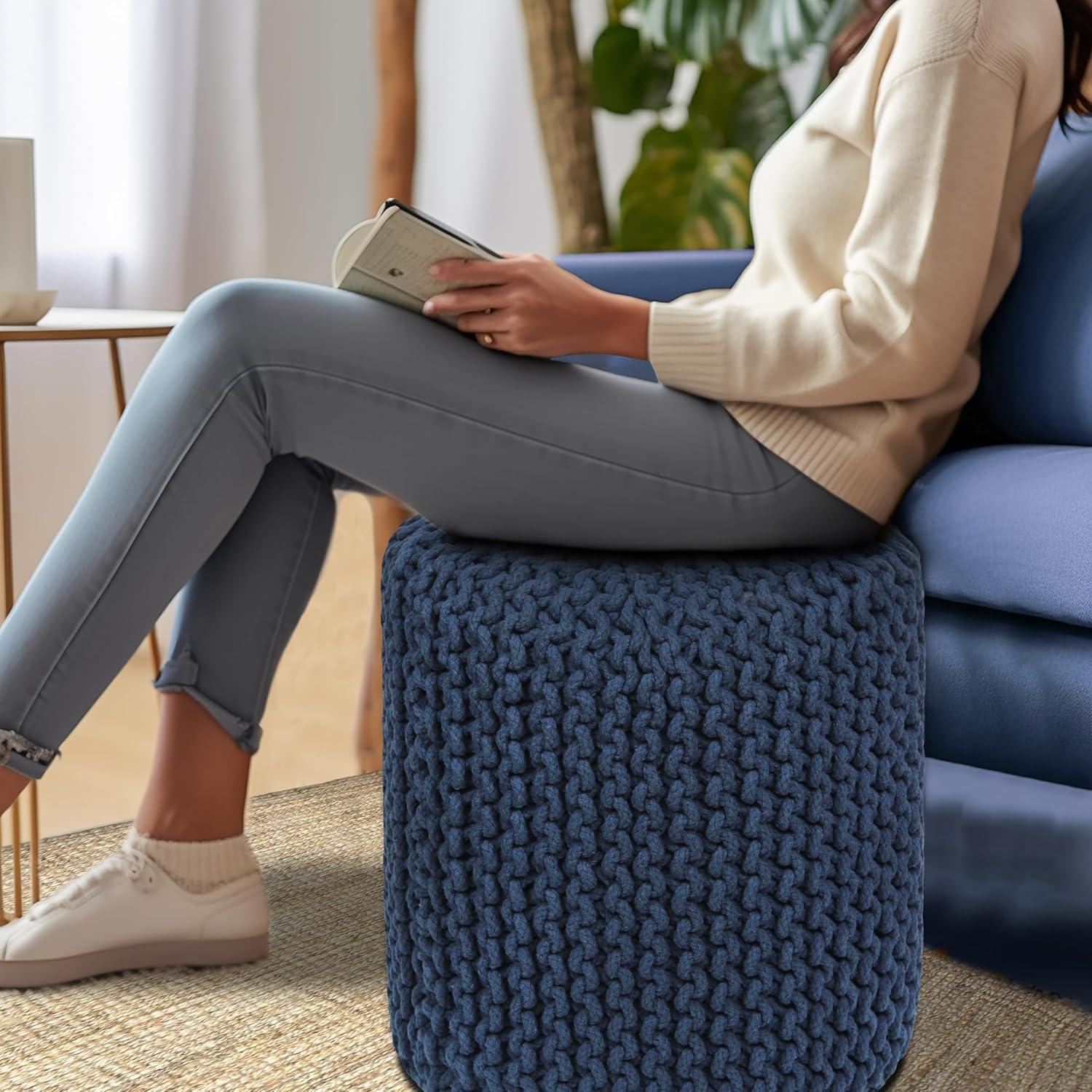 COTTON CRAFT Round Dori Pouf – Cotton Braid Cord Cable Knitted Ottoman – Foot Stool Footrest Floor Pouf Accent Furniture Bean Bag – Living Room Dorm Décor – 20.5 Dia x 13.5 High – Round Ivory Cream(Blue – Cylindrical)
