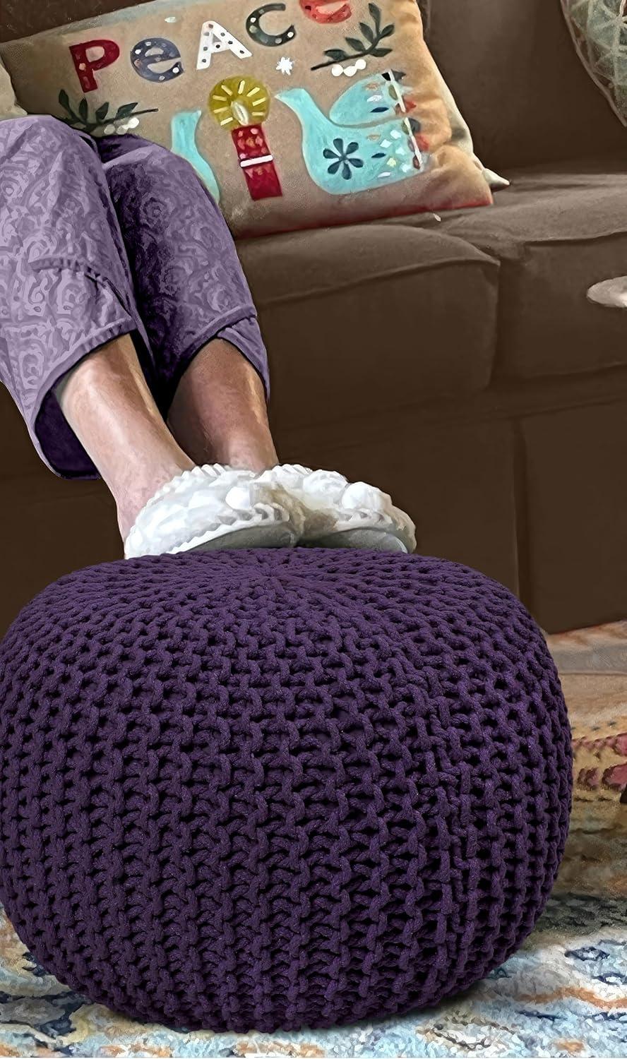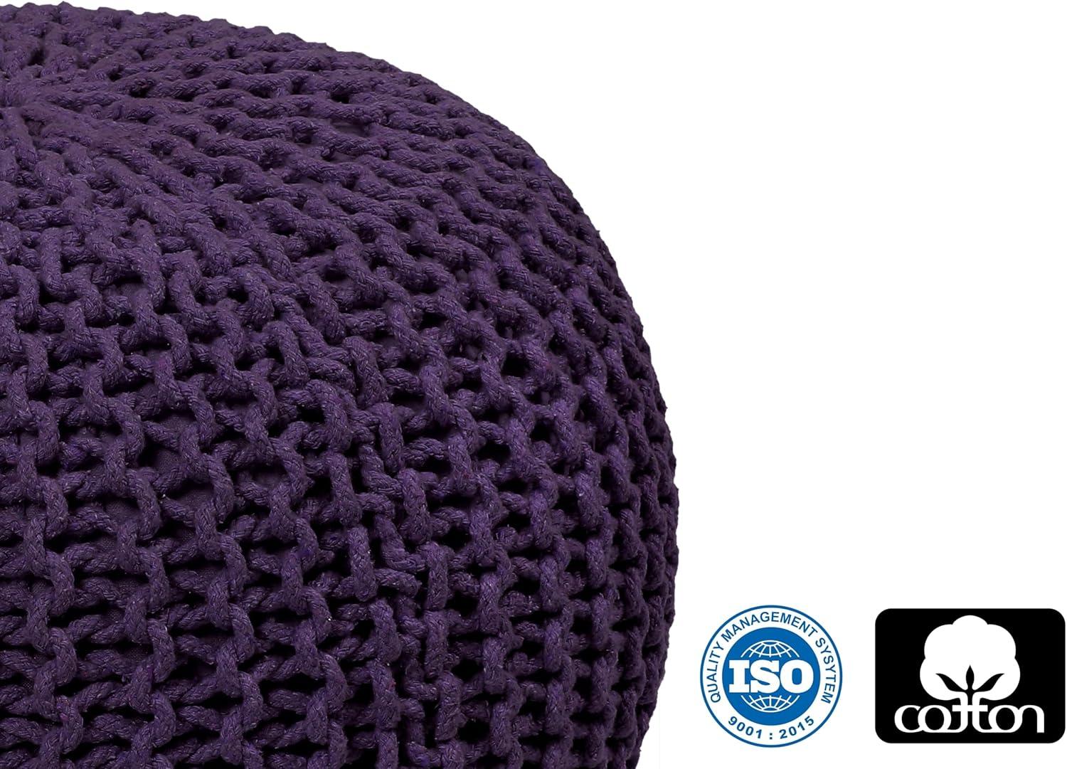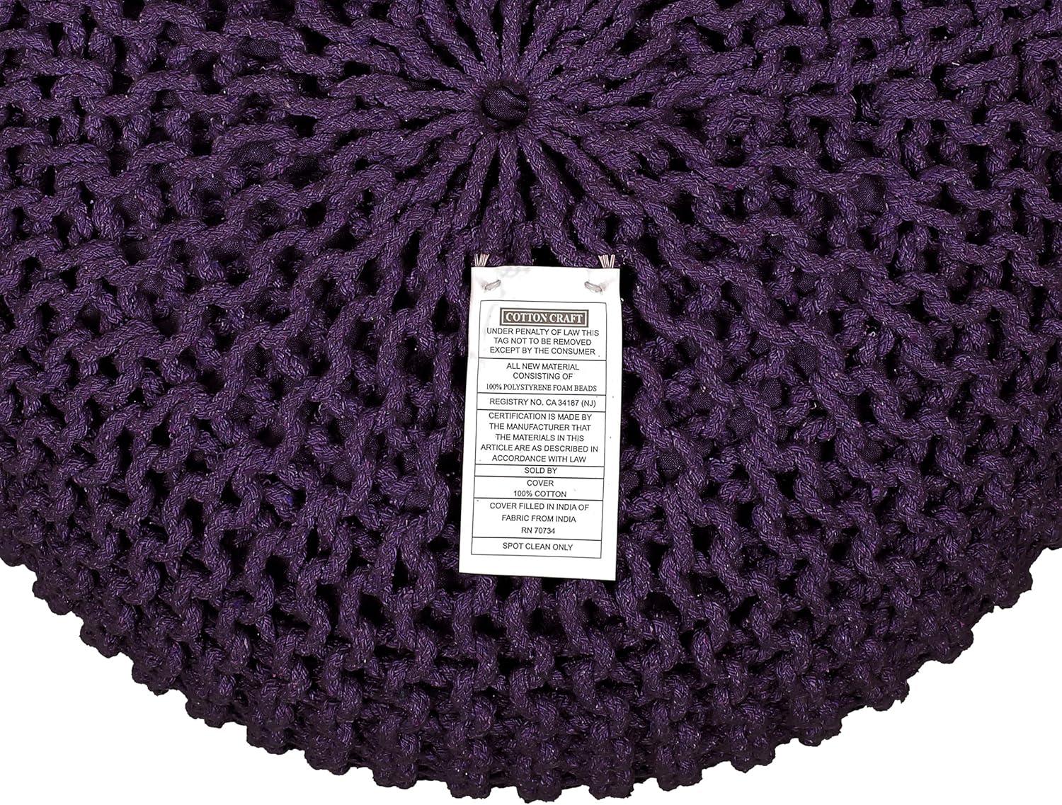 COTTON CRAFT Round Dori Pouf – Cotton Braid Cord Cable Knitted Ottoman – Foot Stool Footrest Floor Pouf Accent Furniture Bean Bag – Living Room Dorm Décor – 20.5 Dia x 13.5 High – Round Ivory Cream(Deep Plum – Round)
