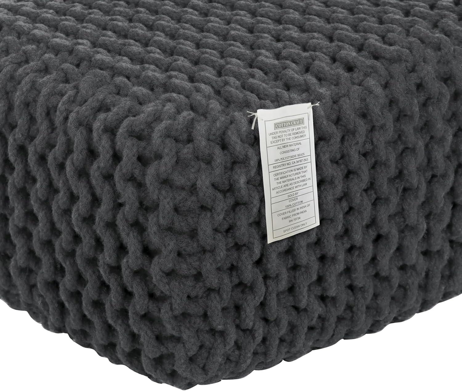 COTTON CRAFT Round Dori Pouf – Cotton Braid Cord Cable Knitted Ottoman – Foot Stool Footrest Floor Pouf Accent Furniture Bean Bag – Living Room Dorm Décor – 20.5 Dia x 13.5 High – Round Ivory Cream(Grey – Cube Small)