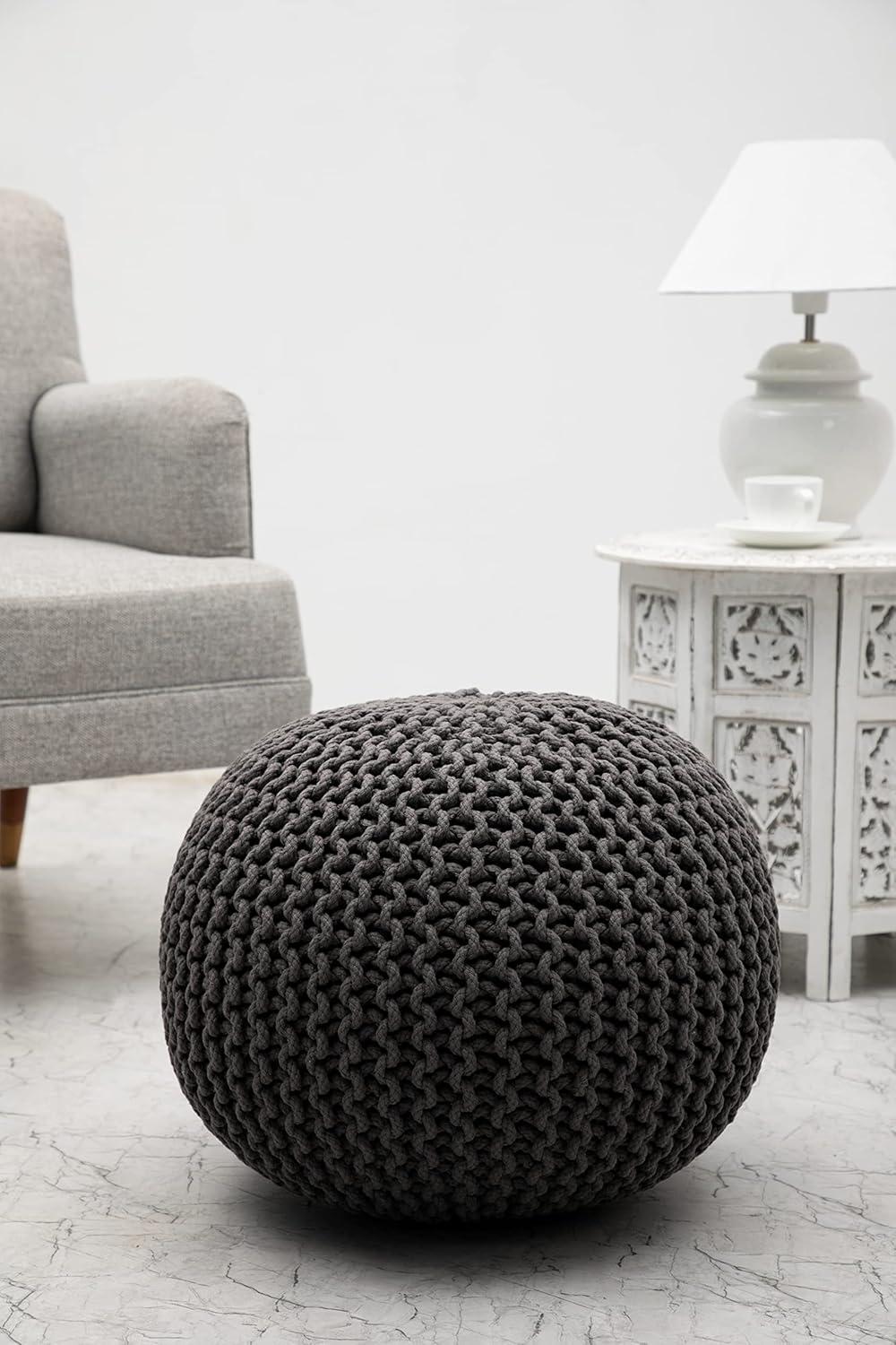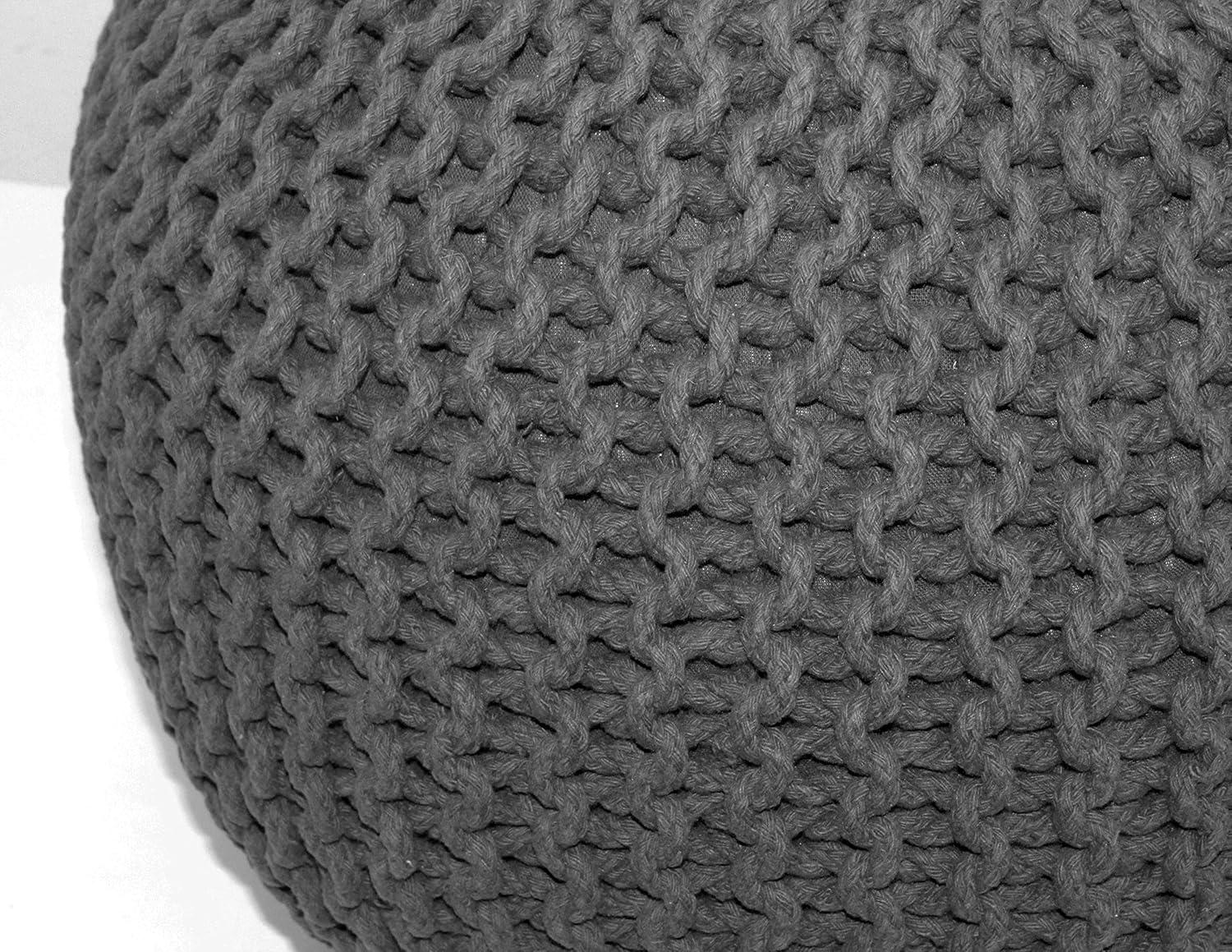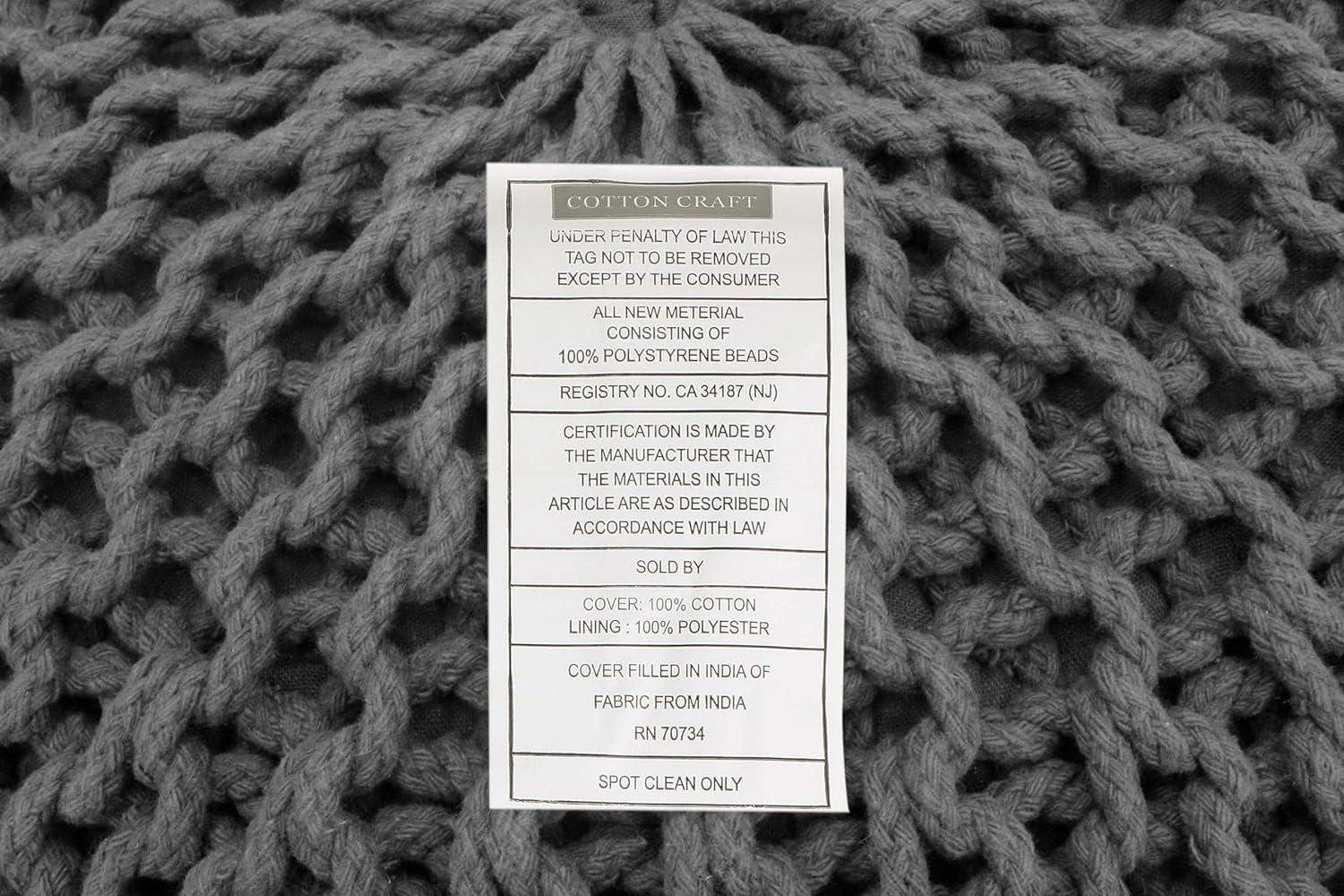 COTTON CRAFT Round Dori Pouf – Cotton Braid Cord Cable Knitted Ottoman – Foot Stool Footrest Floor Pouf Accent Furniture Bean Bag – Living Room Dorm Décor – 20.5 Dia x 13.5 High – Round Ivory Cream(Grey – Round)