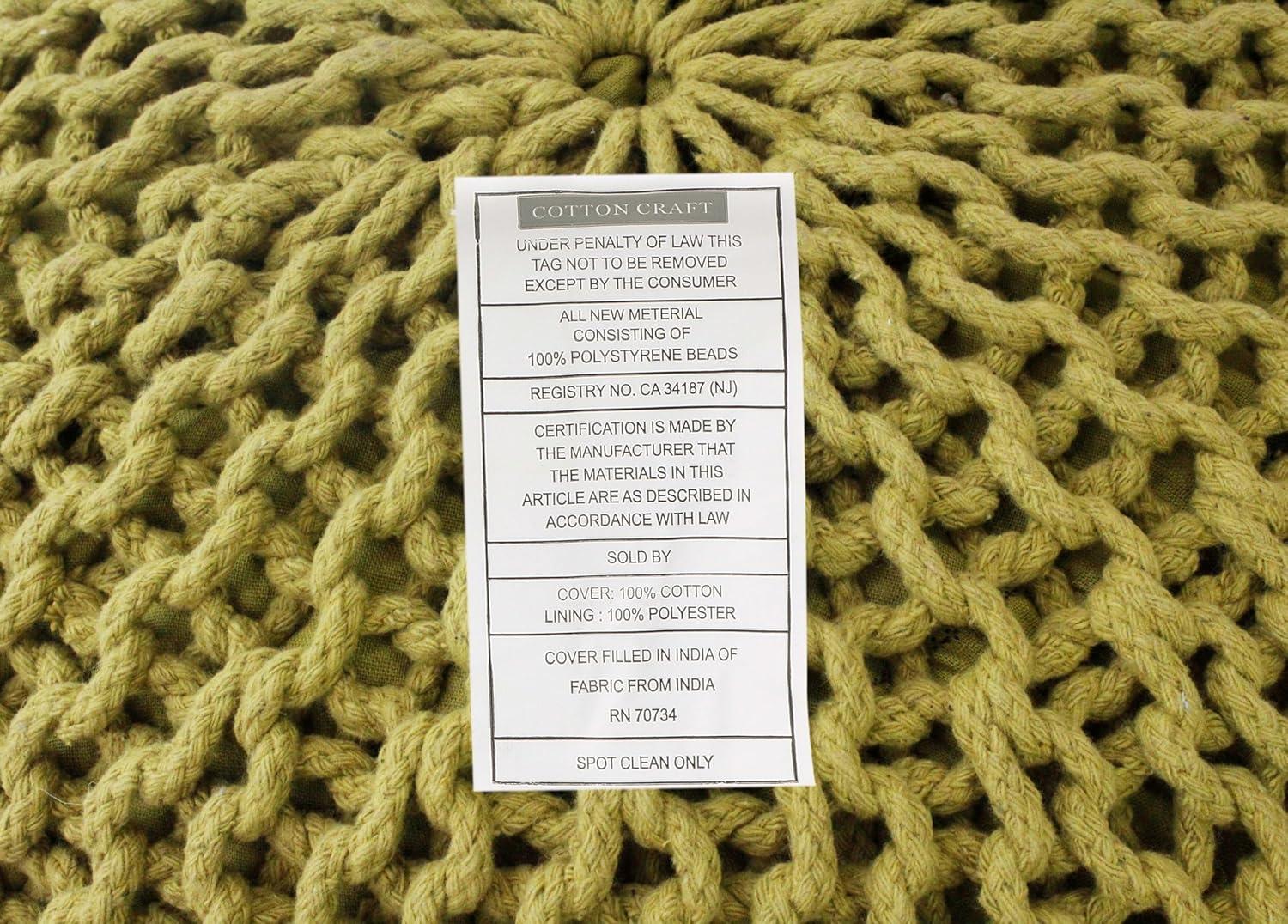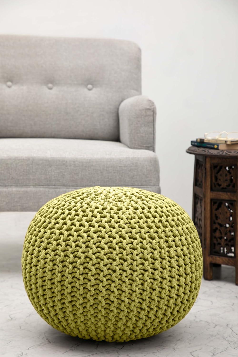 COTTON CRAFT Round Dori Pouf – Cotton Braid Cord Cable Knitted Ottoman – Foot Stool Footrest Floor Pouf Accent Furniture Bean Bag – Living Room Dorm Décor – 20.5 Dia x 13.5 High – Round Ivory Cream(Green – Round)