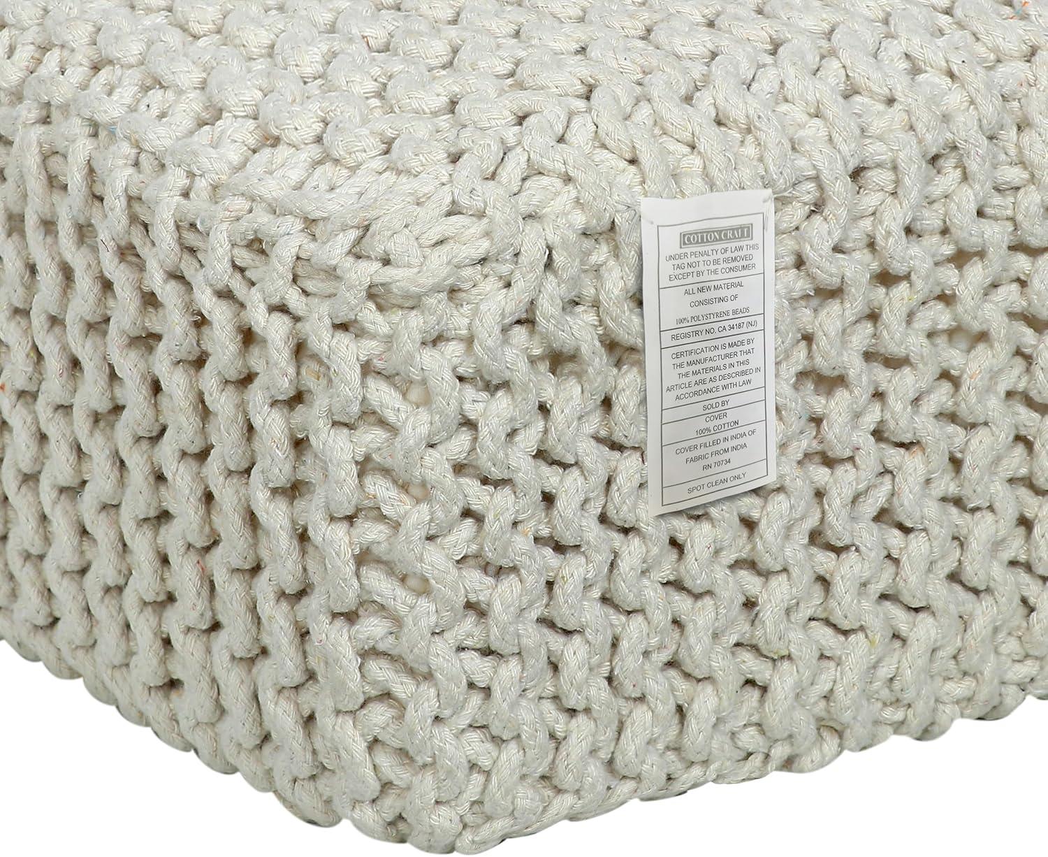 COTTON CRAFT Round Dori Pouf – Cotton Braid Cord Cable Knitted Ottoman – Foot Stool Footrest Floor Pouf Accent Furniture Bean Bag – Living Room Dorm Décor – 20.5 Dia x 13.5 High – Round Ivory Cream(Ivory – Cube Small)