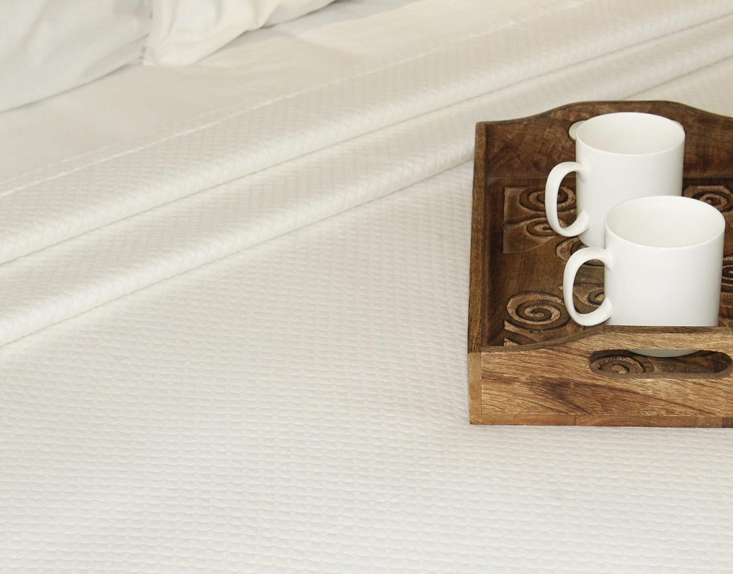 Each matelassé diamond design cotton blanket is woven from 100% pure cotton. Medium weight makes it ideal for any season. Soft and cozy yet very durable. Great for snuggling or for layering with any bedding ensemble. Perfect for master bedrooms, kids rooms, and guest rooms alike! Easily used as a blanket or coverlet. Machine washable for easy care.