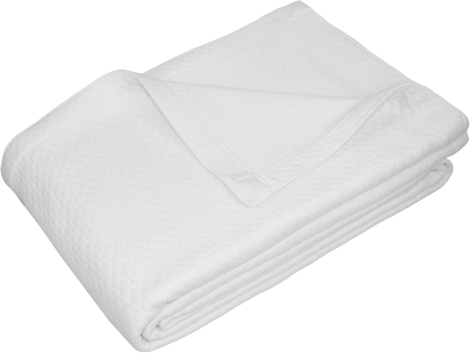 Each matelassé diamond design cotton blanket is woven from 100% pure cotton. Medium weight makes it ideal for any season. Soft and cozy yet very durable. Great for snuggling or for layering with any bedding ensemble. Perfect for master bedrooms, kids rooms, and guest rooms alike! Easily used as a blanket or coverlet. Machine washable for easy care.