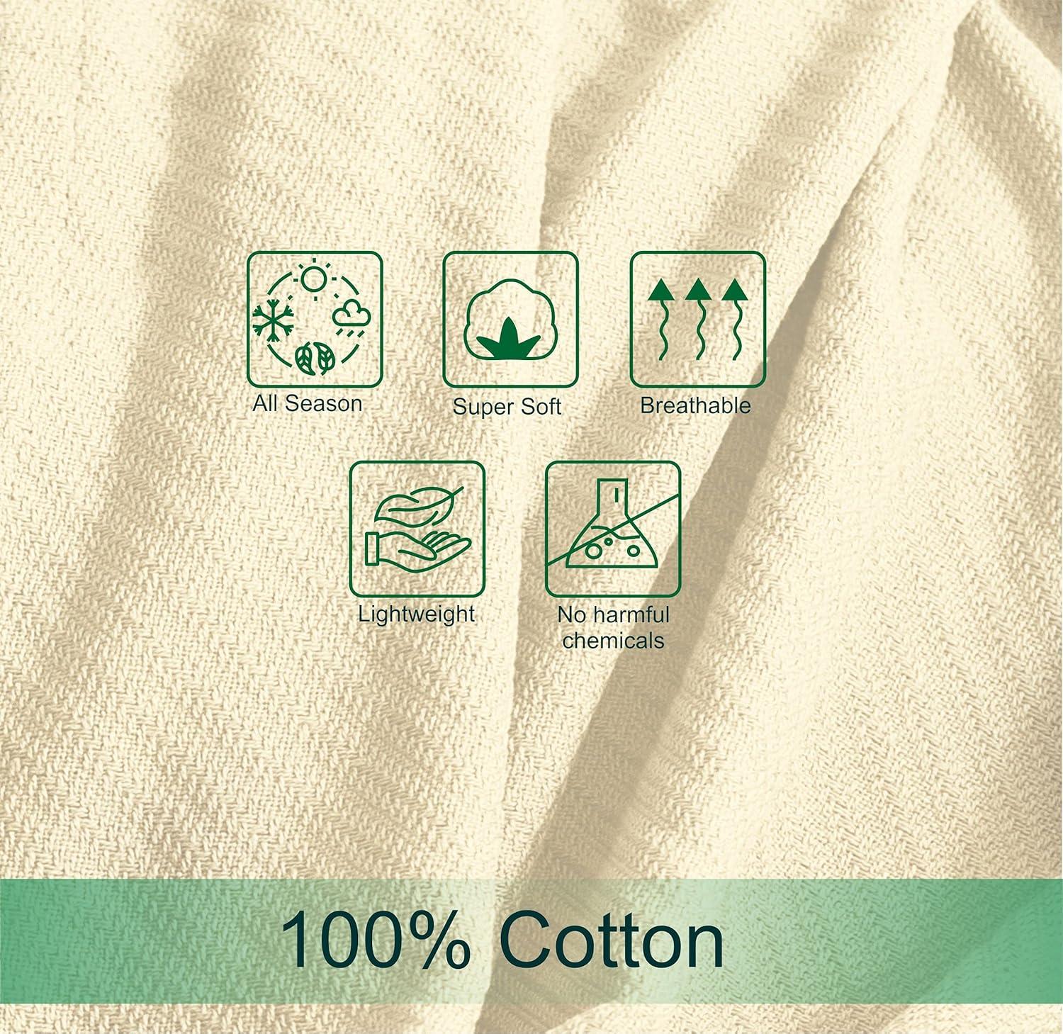 COTTON CRAFT Soft Cotton Thermal Blanket – Plush Herringbone Twill – All Season Luxurious Breathable Skin Friendly Lightweight Cooling Throw Blanket – Sofa Couch Travel Camping Dorm – Full Queen Ivory(Ivory)