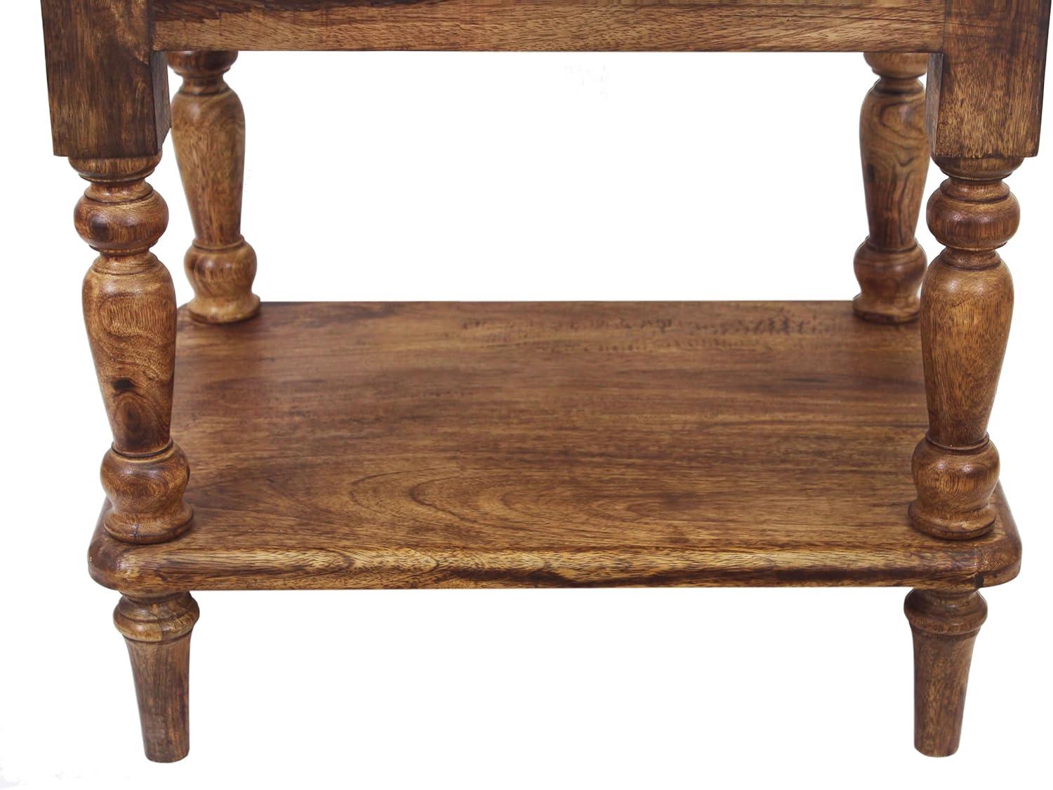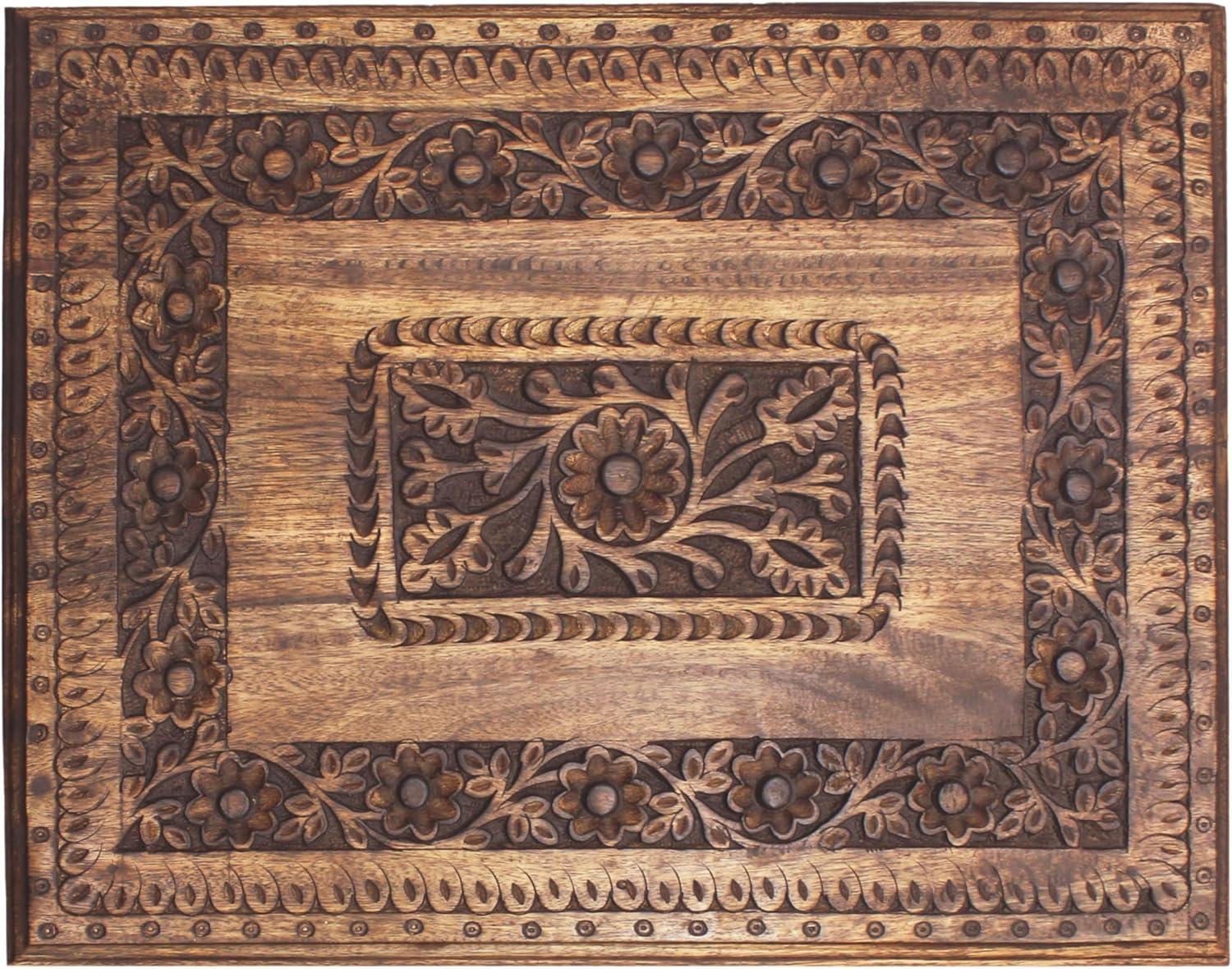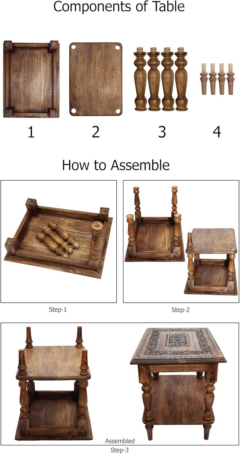 CONSTRUCTION AND CARE: Table is made from 100% Mango wood and the panels are carved MDF. Quality construction adds to its life span, making it an ideal form of decor in terms of efficiency and style. Strong enough to hold up to 50 pounds. Clean with a soft damp cloth. Do not use any abrasive cleaners as it may destroy the finish.