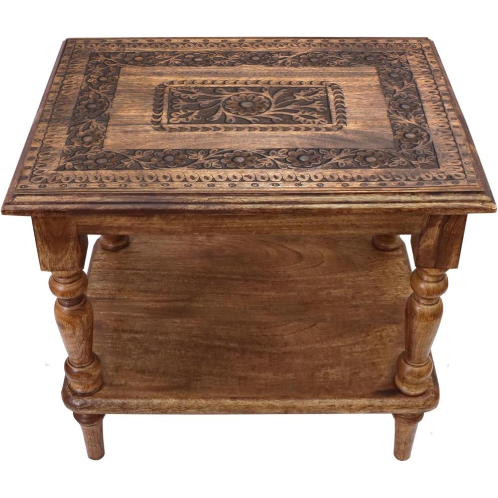 VERSATILE: This small hand-carved wood accent table can be used with a lamp, or as a plant stand, or just a place to keep your newspapers, books and magazines. So you can place it by your sofa, chair, bed or in the entryway to catch your keys. At only 13 pounds it is easily portable from one location to another. Or buy two and put on both sides of your bed or couch.