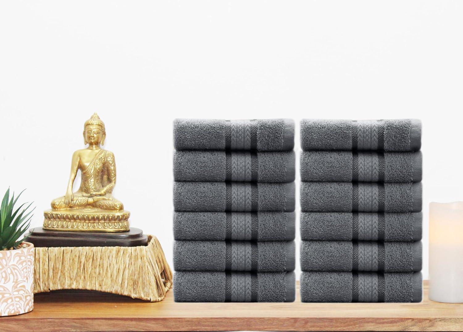 SET INCLUDES: Twelve 12 x 12 inches COTTON CRAFT Ultra Soft Luxury Wash Cloths in Light Blue. Plush, Absorbent 580 GSM weight.
