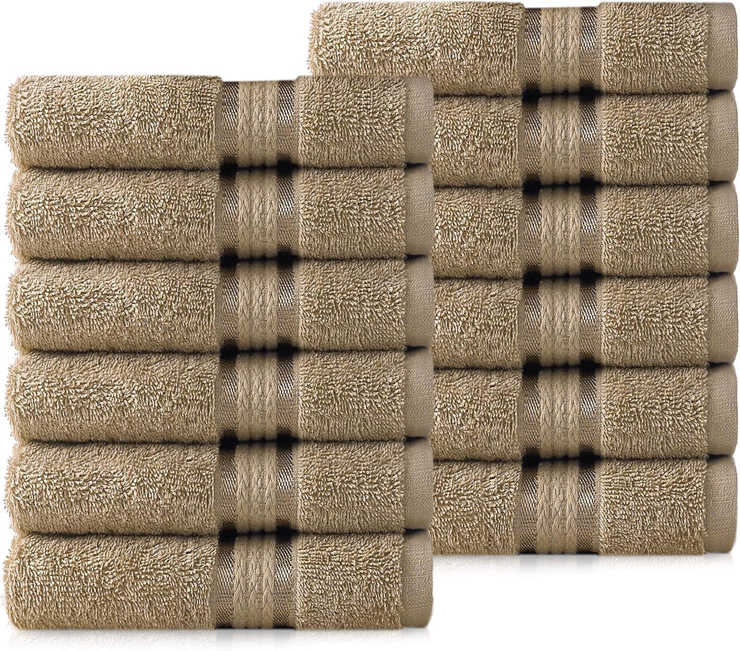 SET INCLUDES: Twelve 12 x 12 inches COTTON CRAFT Ultra Soft Luxury Wash Cloths in Light Blue. Plush, Absorbent 580 GSM weight.