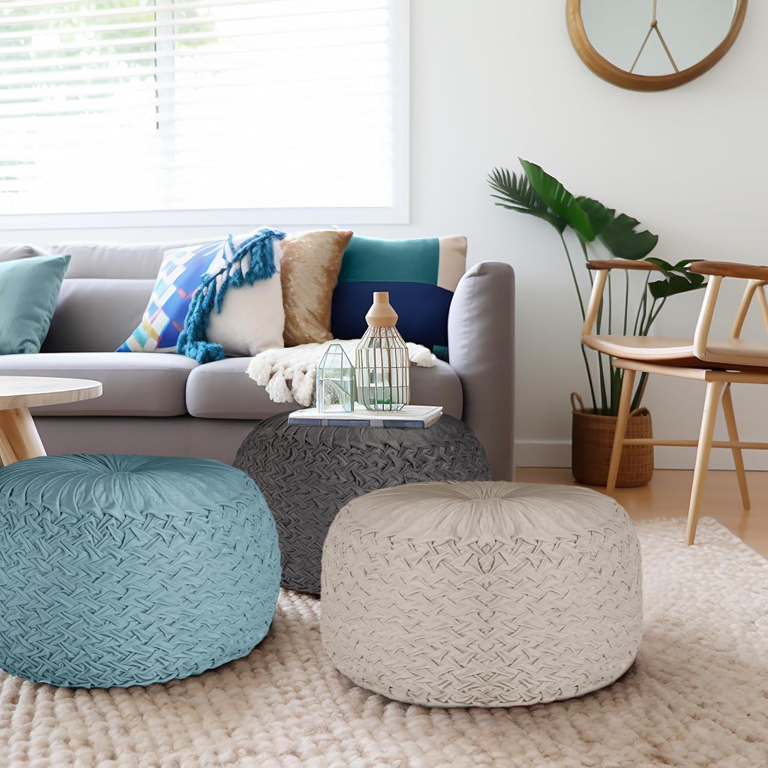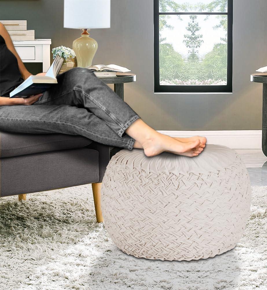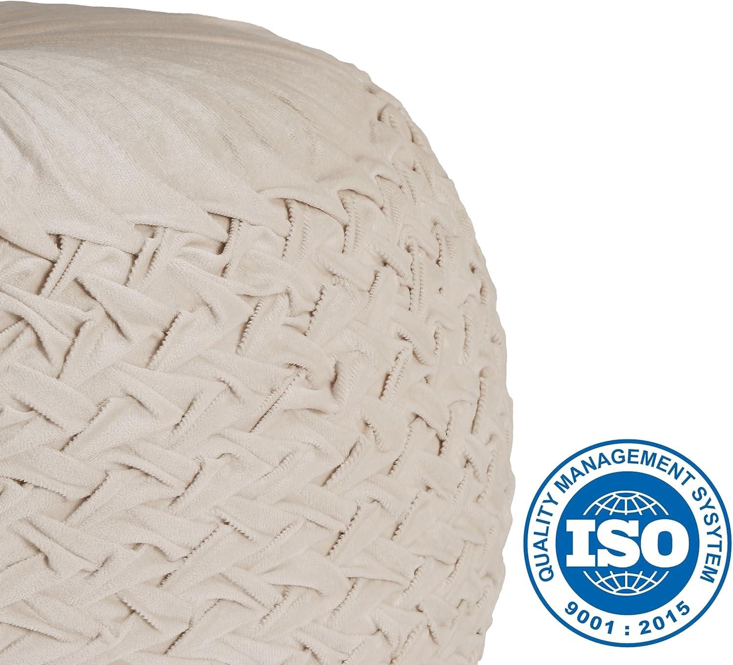 COTTON CRAFT Velvet Pouf Ottoman Footrest Bean Bag – Pleated Comfortable Round Pouf – Prefilled Stuffed Boho Modern Moroccan Plush Home Accent Seating – Nursery Bedroom Dorm – 17×17 inches – Ivory(Ivory)