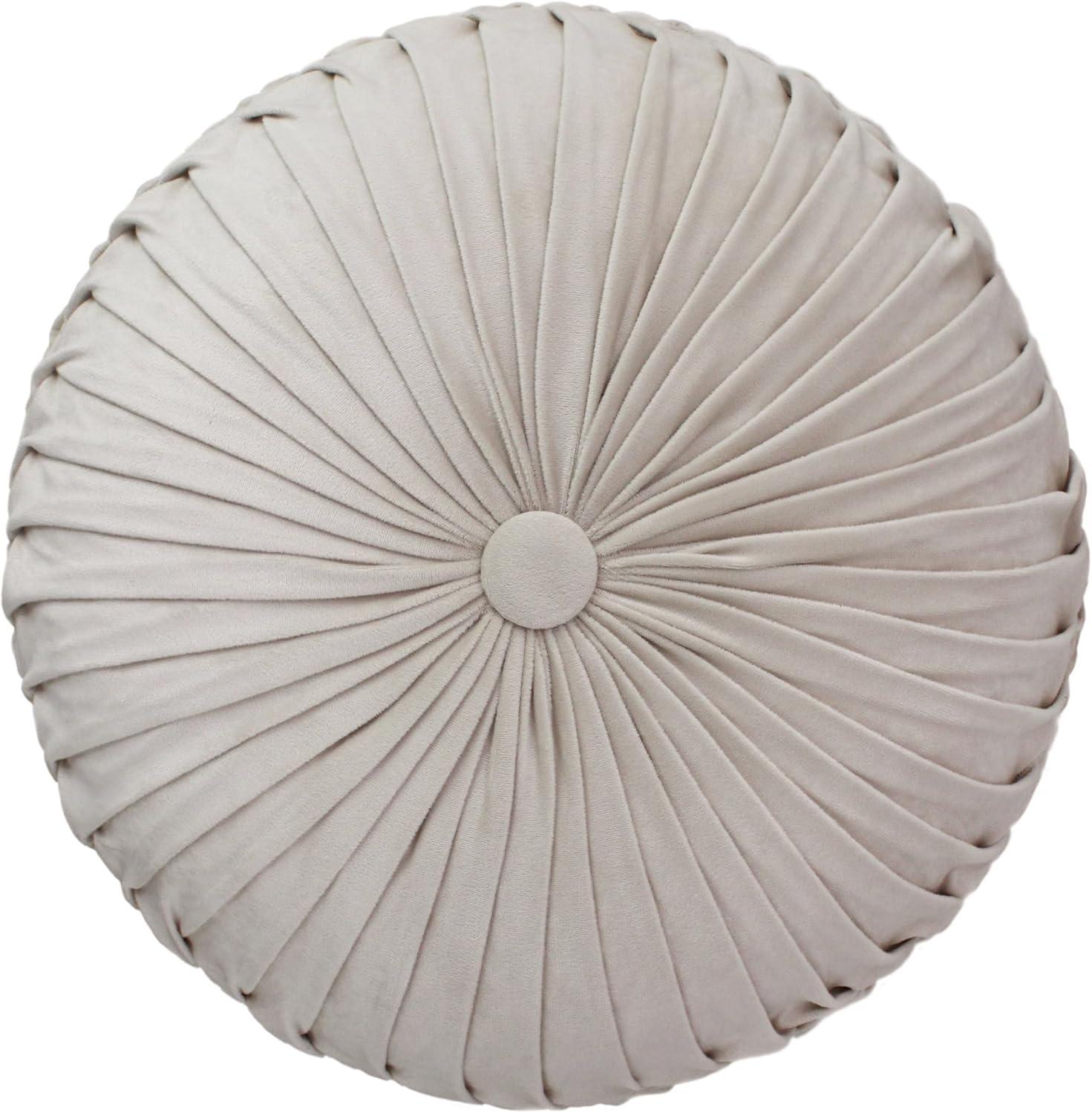 Includes: One (1) filled velvet pleated round Pouf Ottoman measuring 17 inches in diameter by 17 inches height. Filled with dense polystyrene to retain structure and shape. Weight 2 lbs. Color – Ivory