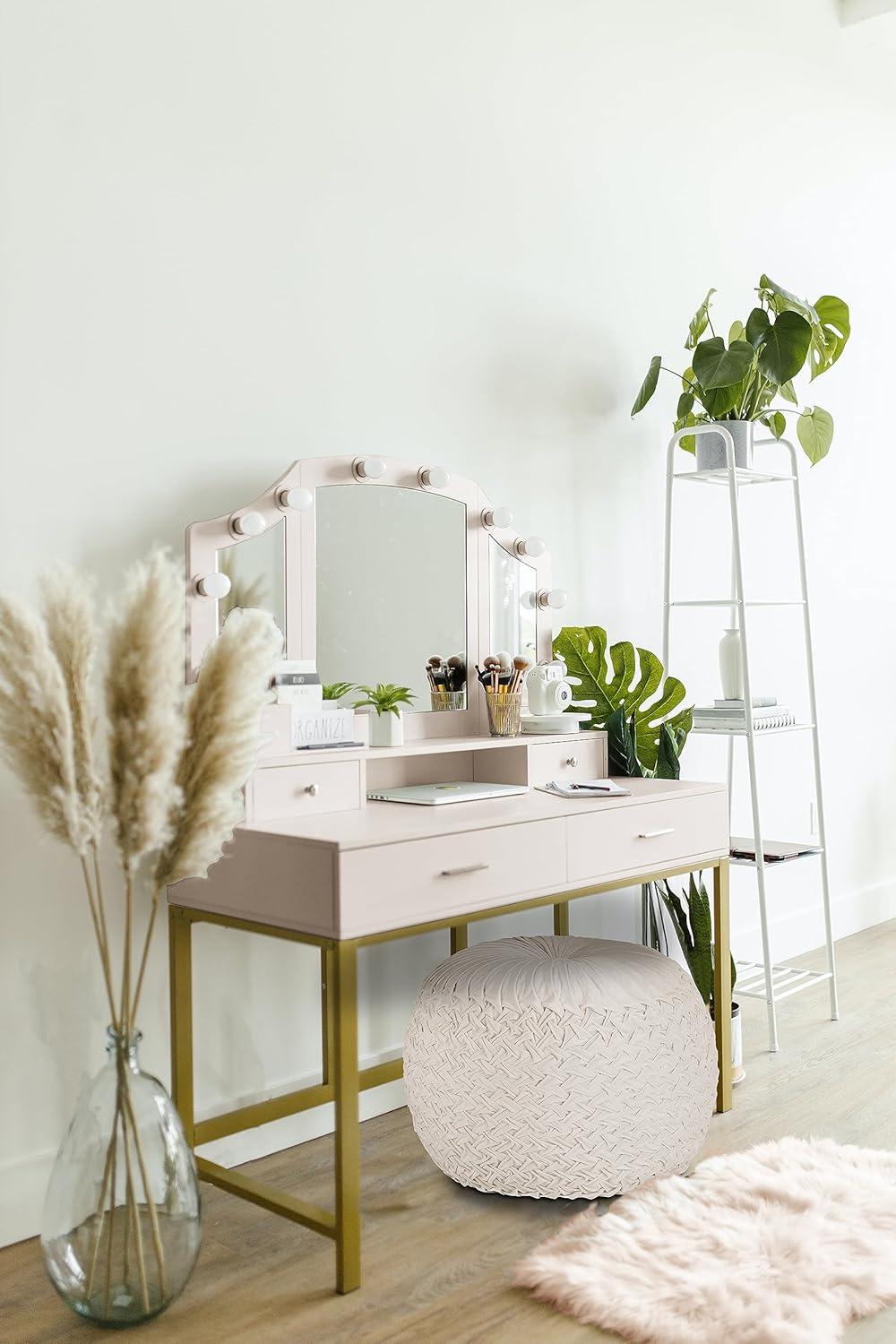 Luxurious Velvet Round Pouf: Thick, soft velvet fabric in a neutral Natural Ivory hue and quality pleating sets this apart as a high value cost effective, affordable item. The intricate weave around the side gives this the elegance from yesteryears but with the function and ease needed for today's home. No Assembly Required.