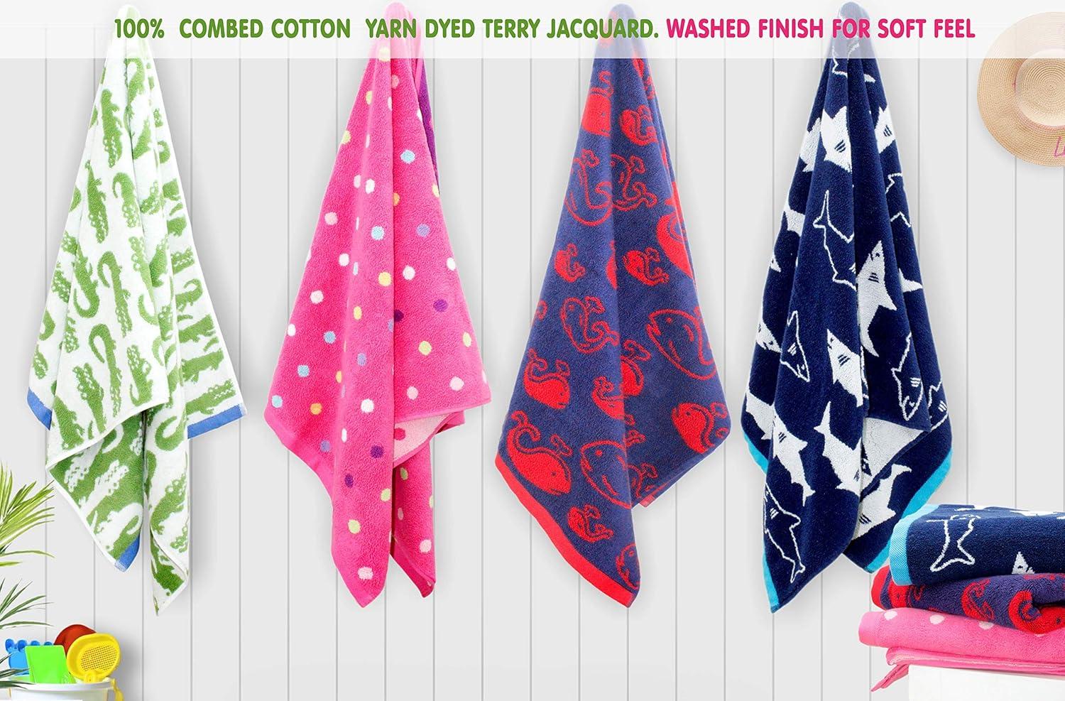 SUPER SOFT: Our towels are made from 100% combed cotton terry jacquard and yarn-dyed for vibrant, long-lasting colors. Each is pre-washed too, so they feel fluffy and soft!