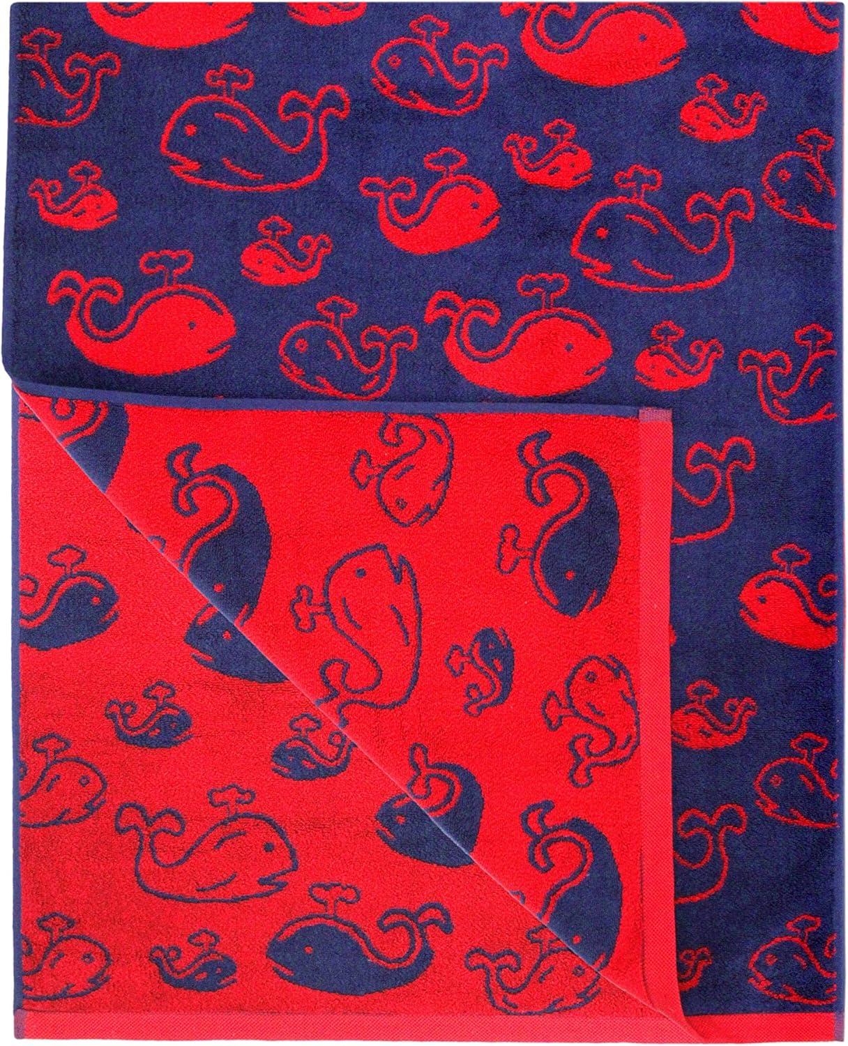 ORIGINAL KIDS 6 Piece Towel Set – Bath Time Whale of A Time – 2 Bath Towels, 2 Hand Towels, 2 Washcloths in Bonus Tote Bag – 100% Cotton Jacquard Soft Absorbent Pool Beach Towel Gift – Navy Blue Red